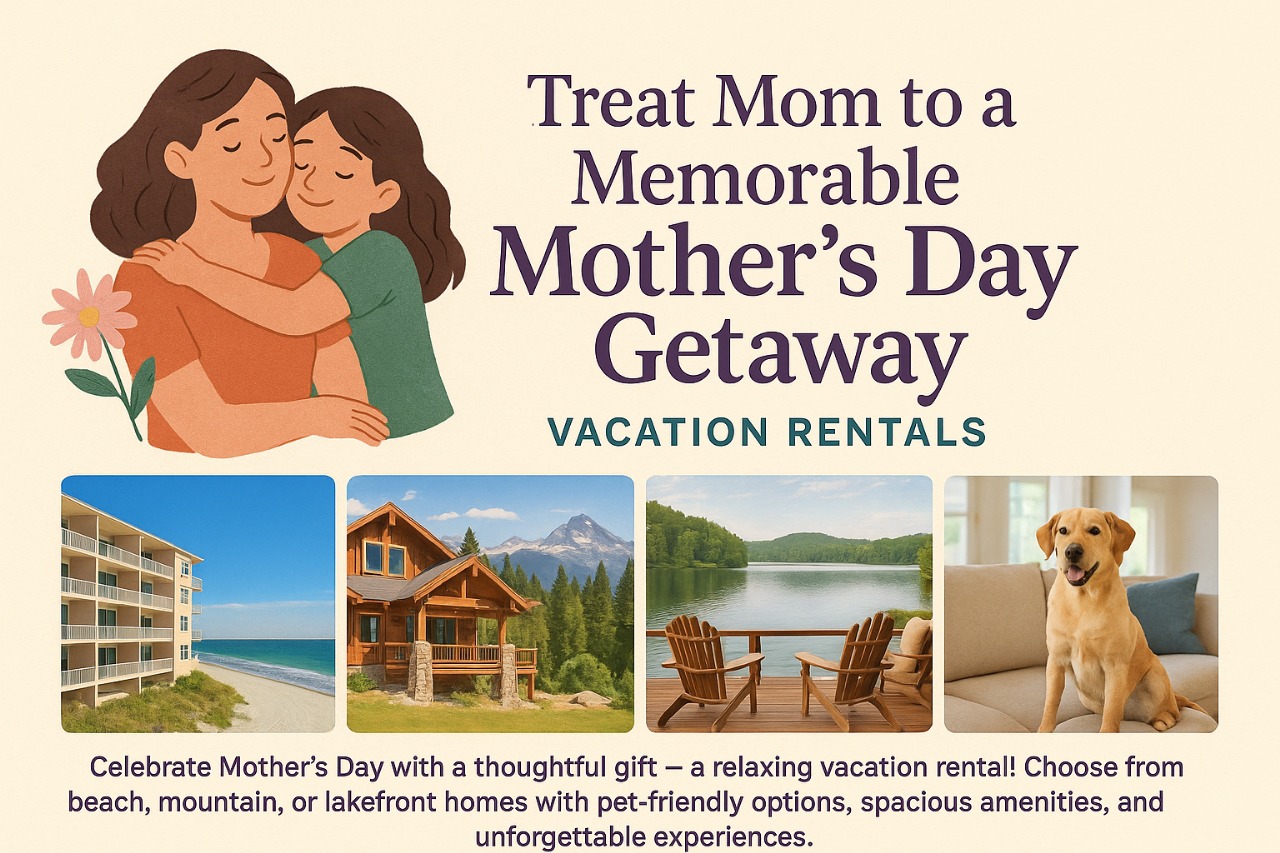This Mother’s Day, go beyond traditional gifts and treat Mom to a memorable getaway in a vacation rental. Vacation rentals offer more comfort, space, and privacy than hotels, allowing her to relax in a setting tailored to her preferences, whether it's a beachfront condo, mountain cabin, or lakefront home. Rentals often include home-like amenities such as full kitchens, multiple bedrooms, private patios, and even pet-friendly options, making them a great choice for family stays. Whether it's a quiet mountain cabin, a coastal rental, a lake house, or a charming wine country rental or small town vacation rental, you can select the perfect location to match her style. Enhance her experience with a spa treatment, a home-cooked meal, or a scenic outing. This thoughtful, personalized trip will leave her with lasting memories of relaxation and joy, all while enjoying the comforts and flexibility of a vacation rental.