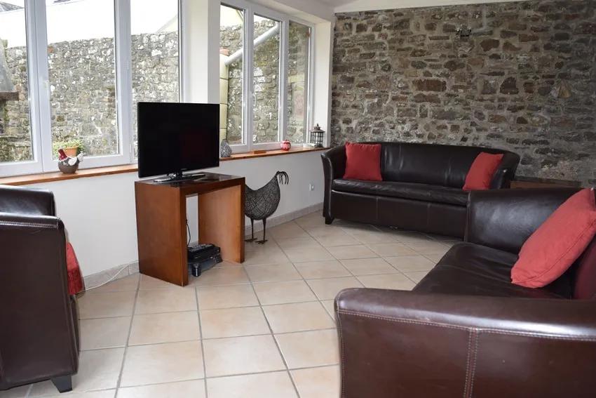 La Croix Verte is a recently converted traditional Cotentin stone holiday rental cottage in the longere style. Newly refurbished to a high standard for 2009 it can comfortably accommodate 6 people, and has a cot for babies/toddlers. On the ground floor are the living room with wood-burning stove and satellite TV, DVD player and phone for incoming calls (free local and emergency calls), separate kitchen with dining area, and a shower room and adjacent WC. A lobby area leads out to a covered terrace with built in barbecue. Upstairs there are three further bedrooms, two with double beds, the other with two single beds. The master bedroom has a king-sized bed and is ensuite with a bath.