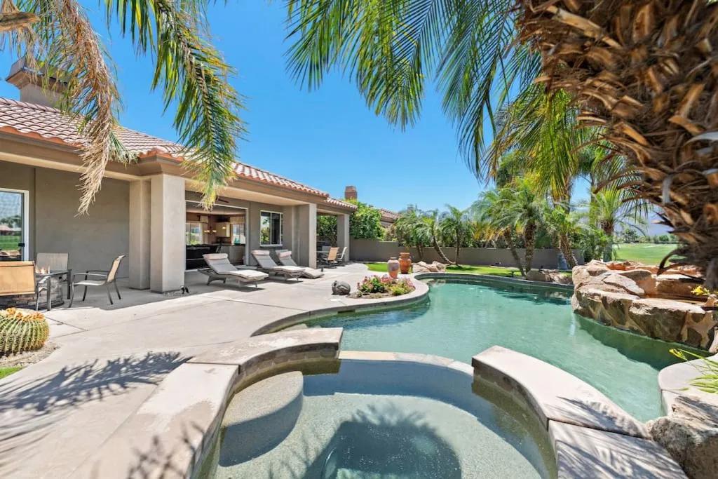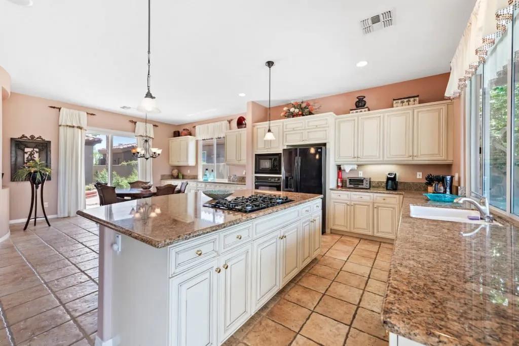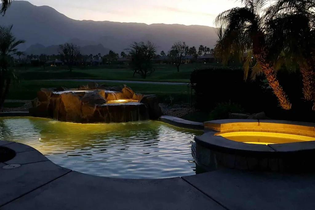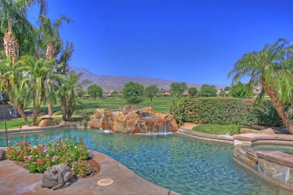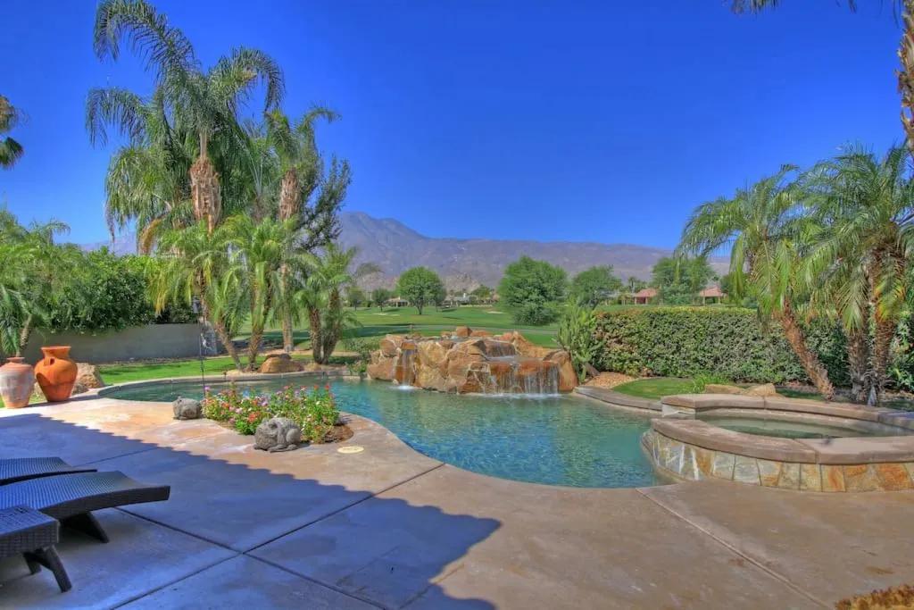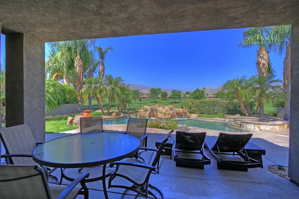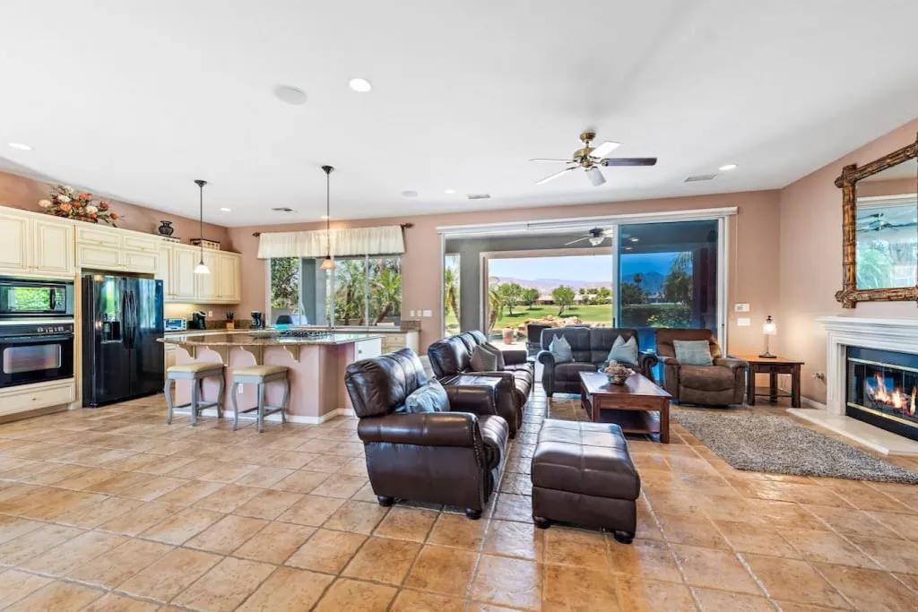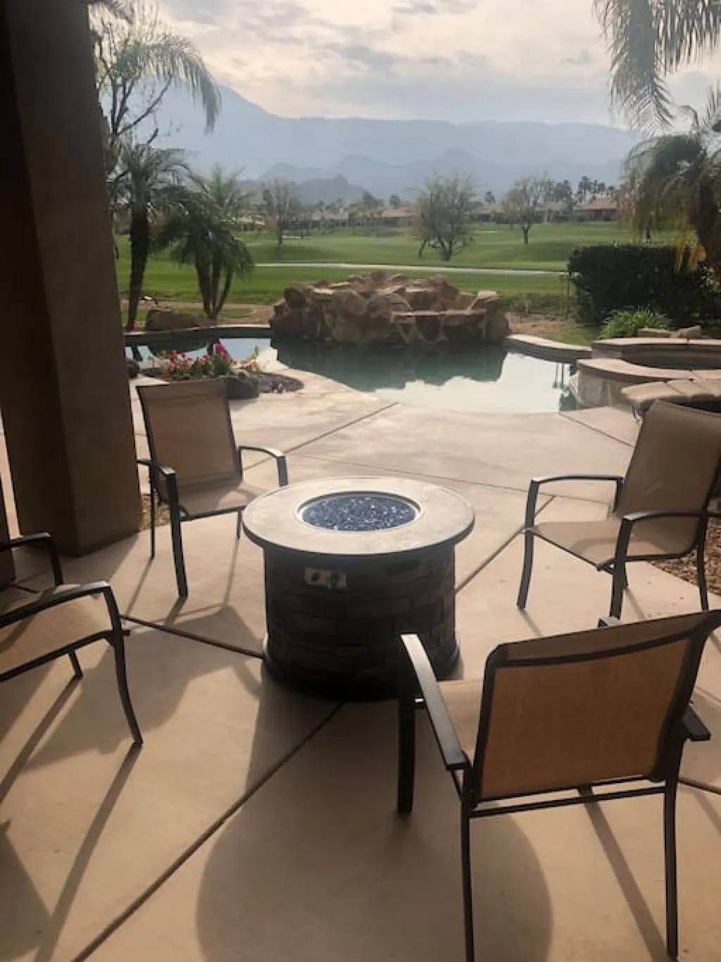 57615 Seminole · PGA West, heated pool, best views, vacation+++, Beautiful Villa rental in La Quinta has 3 bedrooms, 3 bathrooms, 8 sleeps, 1 minimum stay Villa for rent in La Quinta California with the amenities and near by attractions , Air Conditioning, Balcony, Carbon-monoxide detector, Fireplace, Heating, Hot Tub, Kitchen, Parking, Smoke detector, Swimming pool, Washing Machine, Wireless Internet, Hair Dryer , Hangers, Iron & Board , Shampoo, Washer/Dryer Suitable for infants, Suitable for children, Family/kid friendly, Essentials, Bathroom type:private