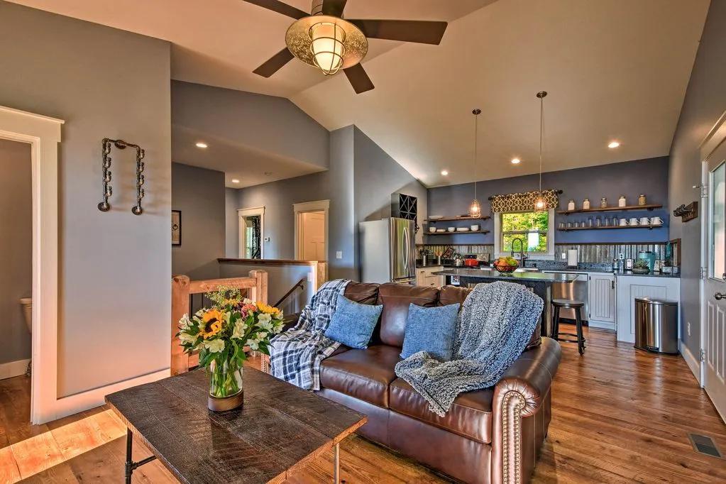 Hiawassee Home w/ Views <1 Mi to Lake Chatuge, Beautiful Cabin rental in Hiawassee has 3 bedrooms, 2.5 bathrooms, 9 sleeps, 2 minimum stay Cabin for rent in Hiawassee Georgia with the amenities and near by attractions , Air Conditioning, Carbon-monoxide detector, Fire extinguisher, Free WiFi, Internet, Kitchen, No Pets Allowed, Non-Smoking, Paper Towels, Parking, Smoke detector, Towels Provided, Wireless Internet, Basic Soaps, Blender, Cable/Satellite TV, Ceiling Fans, Clothes Dryer, Coffee Grinder, Coffee Maker , Dining Area, Dishes & Utensils, Dishwasher, DVD Player, First-aid kit, Freezer, Hair Dryer , Hangers, Heater, Ice Maker, Iron & Board , Kettle, Living Room, Microwave, Outdoor Grill, Oven, Refrigerator, Shampoo, Stove, Telephone, Television, Toaster, Toilet Paper, Washer/Dryer