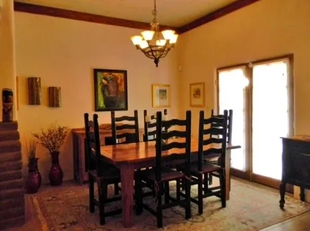 3 Bedrooms House Bella Villa, Beautiful House rental in Taos has 3 bedrooms, 2 bathrooms, 8 sleeps, 6 minimum stay House for rent in Taos New Mexico with the amenities and near by attractions , Air Conditioning, Blender, Microwave, Telephone, Cable/Satellite TV, DVD Player, Outdoor Grill, Television, Ceiling Fans, Freezer, Oven, Toaster, Coffee Maker, Hair Dryer, Refrigerator, Washer/Dryer, Dishes & Utensils, Iron & Board, Stove, Dishwasher, Coffee Grinder, Heater, First-aid kit, Clothes Dryer, Ice Maker, Dining Area, Basic Soaps, Toilet Paper, Living Room, Kettle