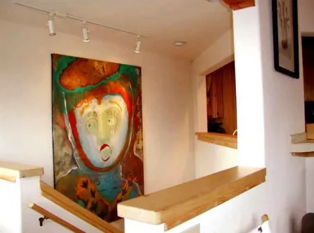 Casa Cielo in Taos, New Mexico - Private, secluded and nestled in a forest of fragrant tall pines this two story, contemporary vacation home offers a setting reminiscent of child hood days and summer camp! The incredible scent of fresh pine fragrance and and the sound sensation of cool mountain breezes are the only sights, sounds and smells you will experience in this totally private setting of tall pines with exquisite mountain views. Casa Cielo has an abundance of large view windows and is light, bright and airy. Both living room and den have their own TV so Kids and Adults can enjoy their own programs. The deck with private hot tub and amazing views make this lovely Taos vacation rental a natural for entertaining or "getting away from it all".