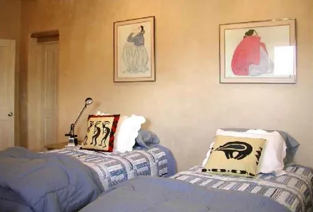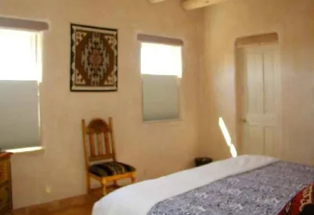 Casa de los Huesos3 BR Vacation Travel Ski Vacation Home Rental is a brand new and very beautiful Southwest style holiday home rental with a wonderful view of the Sangre de Cristo mountain range. This Holiday Travel Ski House Rental has an oversized 2 car garage, private hot tub and a relaxing indoor Jacuzzi tub and separate shower in the master suite. This beautifully appointed 3 BR Travel Ski Home also includes two kiva fireplaces, one in the master suite and the other in the living room and a television and DVD player in every room. Three patios all enclosed by adobe privacy walls offer a lot of extra privacy and outdoor living space. The upscale kitchen is extremely well equipped and boasts upgrade dinnerware for elegant southwest entertaining. Another one of those outstanding Premiere Properties Taos 3 BR Ski Vacation Rental certain to thrill all guests.