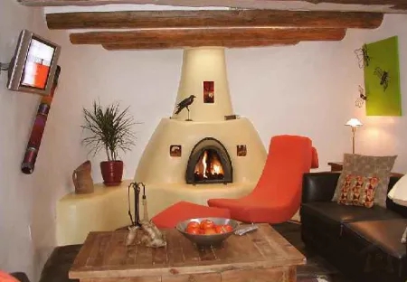 A Taos 2 bedroom historic adobe, restored and upgraded while keeping all the original charm of 1905! Only one block from world class restaurant, "El Monte Sagrado" with upscale lounge, live music, dancing and a favorite gathering spot for Taos locals. An easy walk to Taos Plaza, this very unique Taos vacation rental was originally the family chapel whereby each child was baptized, worshiped and was married. The original family added a casita to the compound as each child left the nest to marry and move into their own private quarters. There are 4 Casa Encantada vacation rentals available for larger groups up to 12 who want separation with close proximity. Casa Encantada 1 offers an exceptionally lovely, professionally landscaped, adobe wall enclosed private patio/yard with private hot tub and ancient cottonwood shade trees. The current owner has transformed this special space to make it one of the most popular 2 bedroom 1 bathroom casitas in the town of Taos, New Mexico. Come and stay with us at Casa Encantada #1 for "upscale southwest country charm" with all the amenities you could want for Taos lodging memories to last a lifetime.