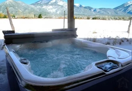 Alto Vallecito - a contemporary custom home on 1.4 acres with expansive unobstructed views of the Sangre de Cristo Mountains, including its' namesake Vallecito Mountain (12,643’). Conveniently located halfway between the town of Taos and world-famous Taos Ski Valley with a unique design interpretation of “Taos Architecture,” blending a pueblo-style flat roof with a pitched roof creating grand cathedral ceilings in the great room and master bedroom. The floor plan is ideally suited for 2 couples (with bedrooms/baths on opposite ends of the house) or a single family with children. The kitchen and living/dining areas are essentially one big space made cozy with a wood-burning stove and takes advantage of the grand mountain views via large picture windows. The home is lovingly stocked by the owners with books, movies, entertainment system, a gourmet kitchen, lead crystal wine glasses, and high quality linens/towels. Enjoy a drink and mountain views from the brand new outdoor hot tub after taking a short walk to the cute village of Arroyo Seco just 1/2 mile away. "A regional contemporary hybrid of two common Taos styles, the design blends flat roof and territorial pitches to create a truly unique interpretation of Taos Architecture. The home is positioned to take advantage of the panoramic views of the nearby Taos Mountains and looks beyond to capture the distant peaks of the Truchas Range. Pumice Crete construction and wise solar orientation keep the home warm in the winter and cool in the summer". Jed Magee, Architect