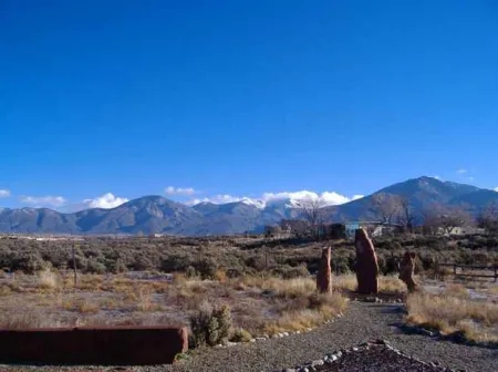 Escape to enchanted Casa Landa 2 BR Ski Travel Home, a serene adobe located in an unspoiled valley between the town of Taos and the Taos Ski Valley. Casa Landa 2 BR Holiday Travel Ski Home Rental features high viga ceilings, radiant heet saltillo tile floors and a classic kiva fireplace. Set on a full acre, the exterior features coyote fencing, stone patio, rock gardens and private hot tub with panoramic views of the Southern Rocky Mountains. The interior exudes comfort and invites relaxation with hand carved Mexican furniture, deluxe bedding, plush towels, select tableware and table furnishings and a well appointed kitchen.