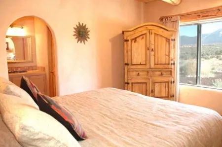 This lovely 2 BR Vacation Travel Ski Home Rental sleeps 6 with a King in the master bedroom, 2 twins or King in the 2nd bedroom and 2 child folding foam futon mats. The Taos area is a four season paradise and Casa Landa 2 BR Ski Holiday Home Rental is an idyllic retreat located in the center of all its offerings. One visit and you will know why many Casa Landa 2 BR Ski Vacation Rental Home guests return year after year to one of their favorite Taos Ski Vacation Rentals.