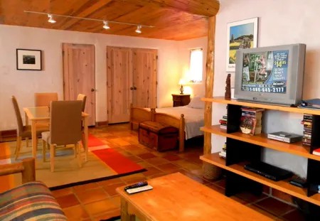 Arroyo Seco, New Mexico Studio, Beautiful Studio rental in Arroyo Seco has 1 bathrooms, 4 sleeps, 2 minimum stay Studio for rent in Arroyo Seco New Mexico with the amenities and near by attractions , Air Conditioning, Blender, Microwave, Telephone, Cable/Satellite TV, DVD Player, Outdoor Grill, Television, Ceiling Fans, Freezer, Oven, Toaster, Coffee Maker, Hair Dryer, Refrigerator, Washer/Dryer, Dishes & Utensils, Iron & Board, Stove, Dishwasher, Coffee Grinder, Heater, First-aid kit, Clothes Dryer, Ice Maker, Dining Area, Basic Soaps, Toilet Paper, Living Room, Kettle