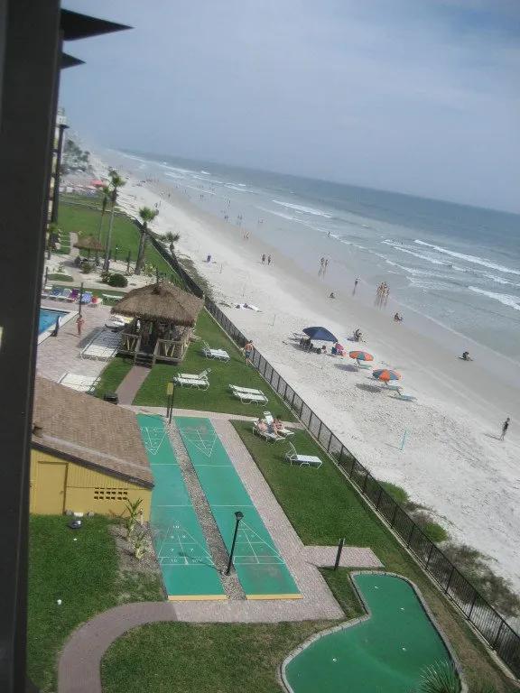 Winter, Spring and Summer dates available. Spectacular Views, Beautiful Resort Studio Unit., Beautiful Studio rental in Daytona Beach Shores has 1 bathrooms, 4 sleeps, 4 minimum stay Studio for rent in Daytona Beach Shores Florida with the amenities and near by attractions , Air Conditioning, Balcony, Beach Chairs, Beach View, Communal Pool, Deck/Patio, Elevator, Free WiFi, Game Room, Heated Pool, Heating, Indoor Pool, Internet, Kid Friendly, Kitchenette, Linens Provided, Managed by Owner, No Pets Allowed, Non-Smoking, Ocean View, Oceanfront, Outdoor Shower, Parking, Towels Provided, Water View, Waterfront, Wireless Internet, Beachfront, Microwave, Cable/Satellite TV, DVD Player, Television, Ceiling Fans, Freezer, Toaster, Coffee Maker , Hair Dryer , Refrigerator, Washer/Dryer , Dishes & Utensils, Iron & Board Beach(onsite), Live Entertainment(onsite), Miniature Golf(onsite), Ocean(onsite), Surfing(onsite), Boating(< 1 mile), Grocery Store(< 1 mile), Playground(< 1 mile), Shopping Area(< 1 mile), Snorkeling(< 1 mile), Park, (1 mile)Tennis(1 mile), Amusement Park(2 miles), Bowling(2 miles), Canoeing(2 miles), Fishing(2 miles), Water Park(2 miles), Parasailing(3 miles), Golf(4 miles), Deep Sea Fishing(5 miles), Jet Skiing(5 miles), Kayaking(5 miles), Sailing(5 miles), Scuba Diving(5 miles)