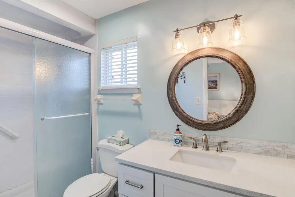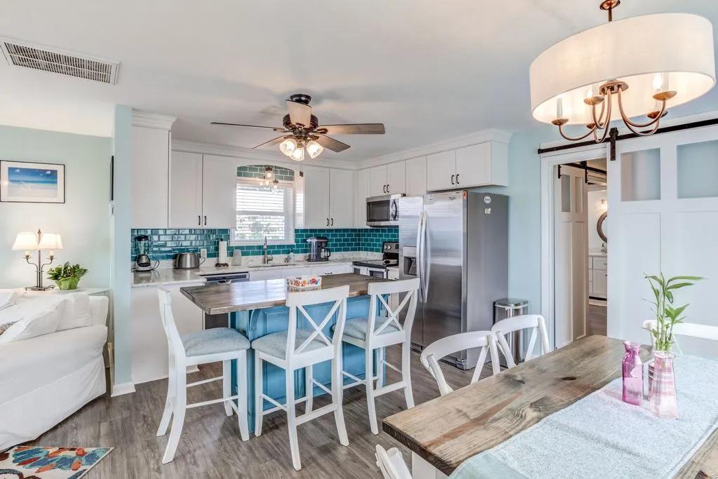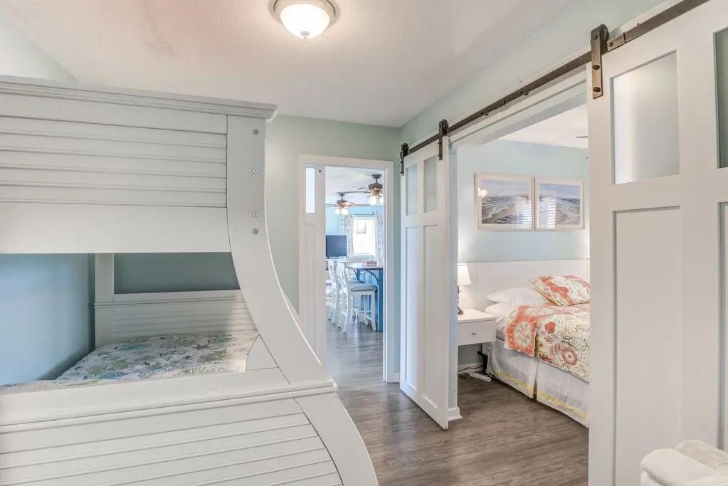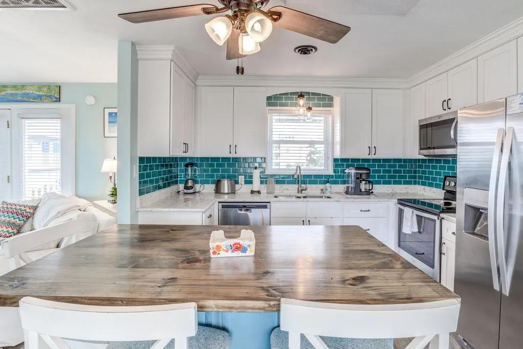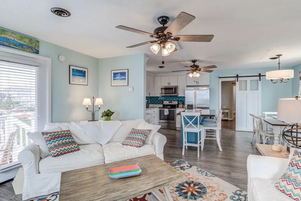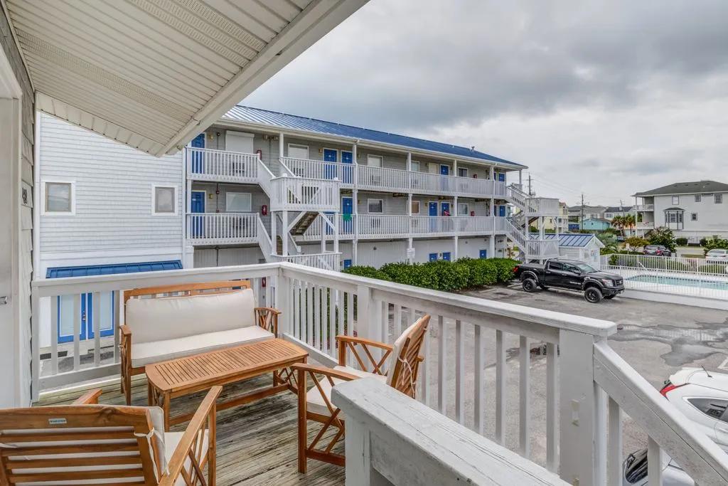 NEWLY RENOVATED: Ocean View with a walk across the street to public beach access, Beautiful Condo rental in Carolina Beach has 1 bedrooms, 1.5 bathrooms, 5 sleeps, 3 minimum stay Condo for rent in Carolina Beach North Carolina with the amenities and near by attractions , Air Conditioning, Balcony, Beach View, Bicycles, Children Welcome, Communal Pool, Deck/Patio, Exterior lighting, Heating, Internet, Kitchen, Linens Provided, No Smoking, Ocean View, Parking, Smoke detector, Swimming pool, Towels Provided, Washing Machine, Wireless Internet, Cable/Satellite TV, Clothes Dryer, Coffee Maker , Dining Area, Dishes & Utensils, Dishwasher, DVD Player, Hair Dryer , Heater, Living Room, Microwave, Oven, Refrigerator, Stove, Television, Toaster, Washer/Dryer Near the ocean, Pantry Items, Dining(There is a dining table that sits 6 as well as an island with 3 stools), Stereo, Books, Lawn / Garden, wheelchair inaccessible, Long-term Renters Welcome