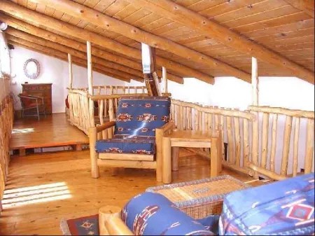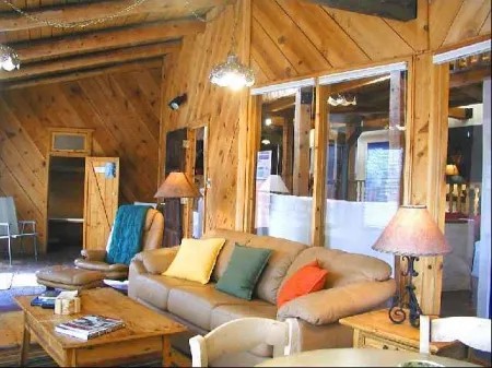 Manzanares a totally "FUN" 3 BR Ski Vacation Travel Home Rental is located in the heart of Taos, New Mexico Village within walking to everything! This is one of the most unique Taos Ski Vacation Rentals that Premiere offers. Manzanares boasts 3 indoor living/ gathering areas - the open "Pit" Living Room with cast iron wood burning stove and Satellite TV, the Family room with a wonderful "Sauna" and large TV and the upstairs loft with 2 seating areas and 2 sleeping areas. Two of the three private bedrooms are ideal for couples with the third bedroom hosting a set of bunk beds and the loft offering 2 Twins in a semi separate area and the daytime loft futon becomes a bed for two at night. All three bedrooms have their own satellite TV. The private outdoor hot tub's soothing "night sky" soaks coupled with the indoor "Sauna" give guests the best night's sleep ever! Come and enjoy a "Manzanares fun filled relaxing vacation stay" in Taos, New Mexico!