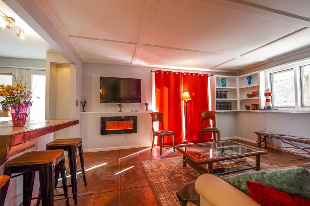 Unique 1 bedroom sleeps 2-5 wood sauna swimming, Beautiful House rental in Boone has 1 bedrooms, 1 bathrooms, 5 sleeps, 1 minimum stay House for rent in Boone North Carolina with the amenities and near by attractions , Air Conditioning, Balcony, Carbon-monoxide detector, Deck/Patio, Fire extinguisher, Free WiFi, Heating, Kitchen, Lake View, Parking, Smoke detector, Towels Provided, Washing Machine, Waterfront, Basic Soaps, Cable/Satellite TV, Coffee Maker , Dishes & Utensils, First-aid kit, Hair Dryer , Hangers, Iron & Board , Microwave, Oven, Refrigerator, Shampoo, Stove, Television, Toilet Paper, Washer/Dryer Laptop-friendly workspace, Essentials, Hot water, Free on-street parking, Single level home, Cooking basics, Keypad(Check yourself in to the home with a door code), Private entrance, Luggage drop-off allowed, Extra pillows and blankets, Bed linen, Garden or backyard