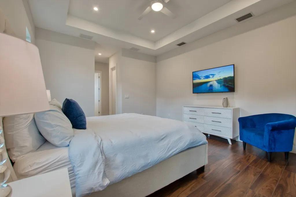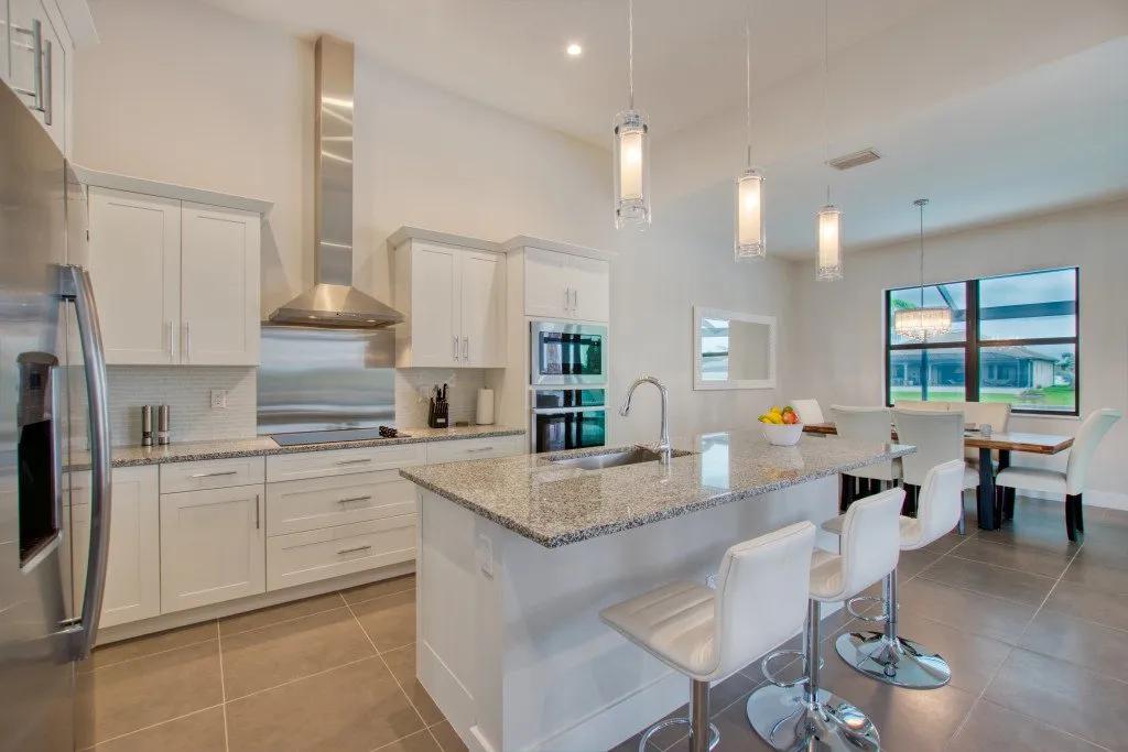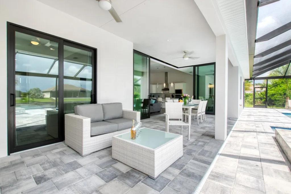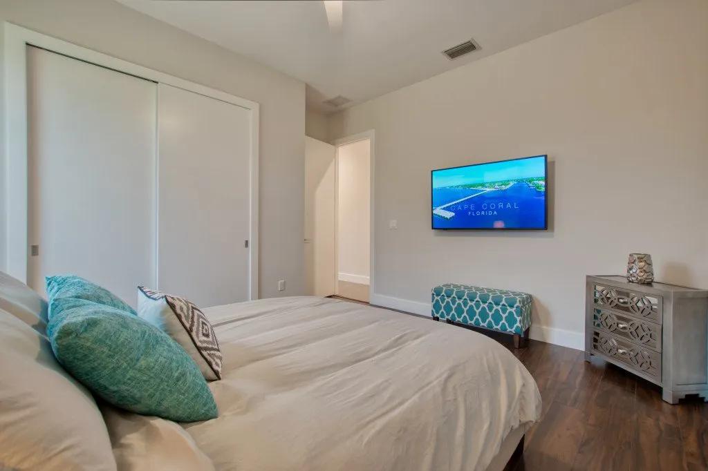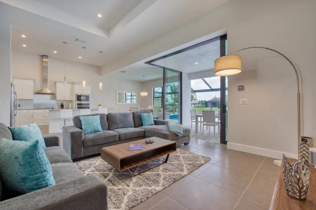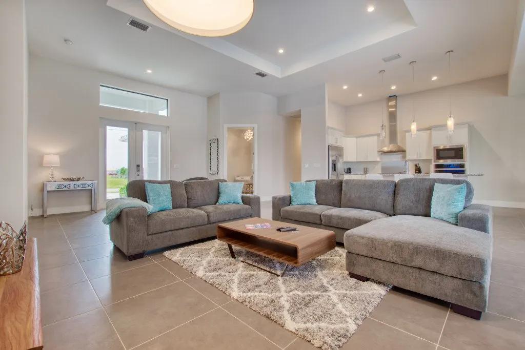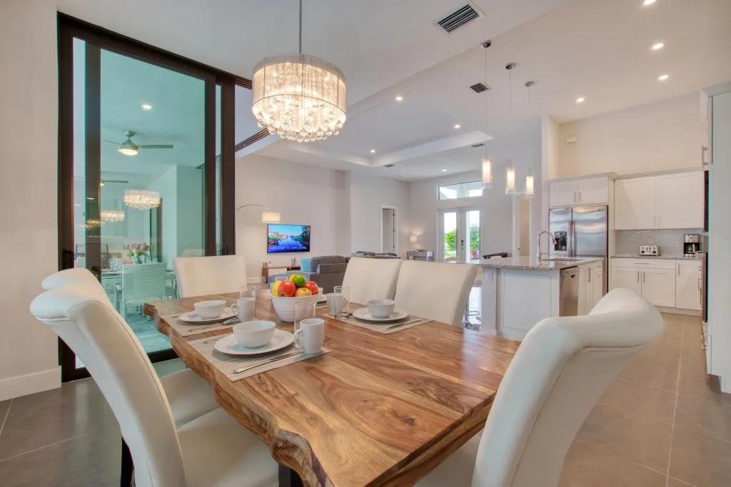 Intervillas Florida - Villa Cayman, Beautiful Villa rental in Cape Coral has 3 bedrooms, 2 bathrooms, 6 sleeps, 7 minimum stay Villa for rent in Cape Coral Florida with the amenities and near by attractions , Air Conditioning, Balcony, Beach Chairs, Communal Pool, Free WiFi, Full Kitchen, Garage, Heated Pool, Internet, Kid Friendly, Linens Provided, No Pets Allowed, Non-Smoking, Parking, Private Pool, Swimming pool, Towels Provided, Washing Machine, Wireless Internet, Clothes Dryer, Ice MakerOutdoor Whirlpool, Salt water pool, Apple TV, Netflix, Sonos sound system, Golf, Luxury Homes, Beach towels, Coolbox, Covered seating area, Garden, 6 Garden-Chairs, 4 Deck-Chair, Cutlery & Glasses, Ceramic / ceramic hob, Kitchen bar, Cold water dispenser