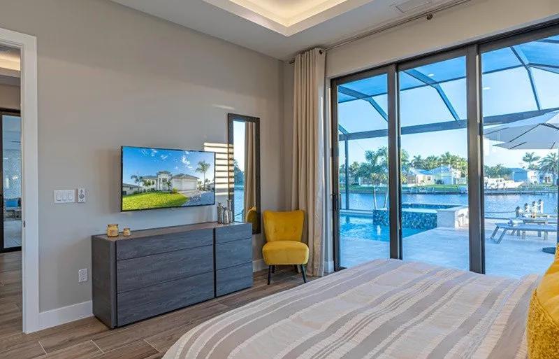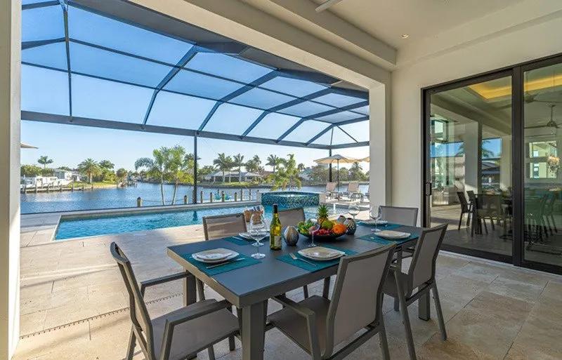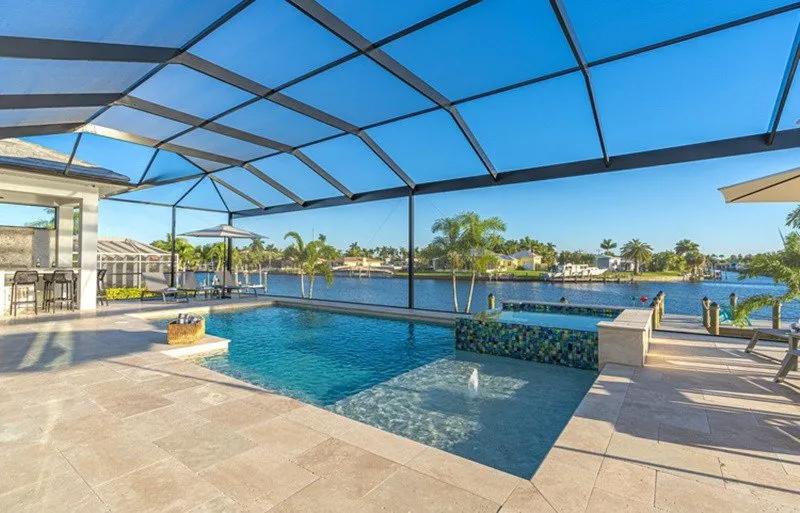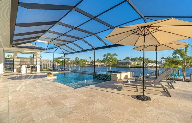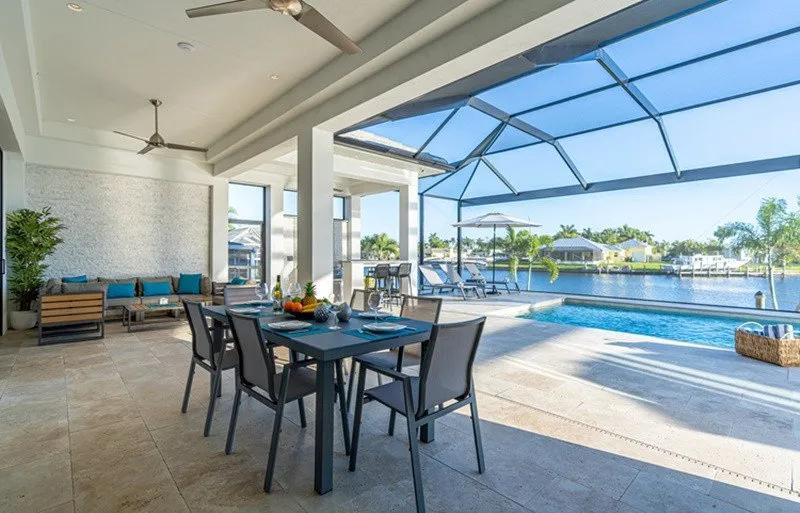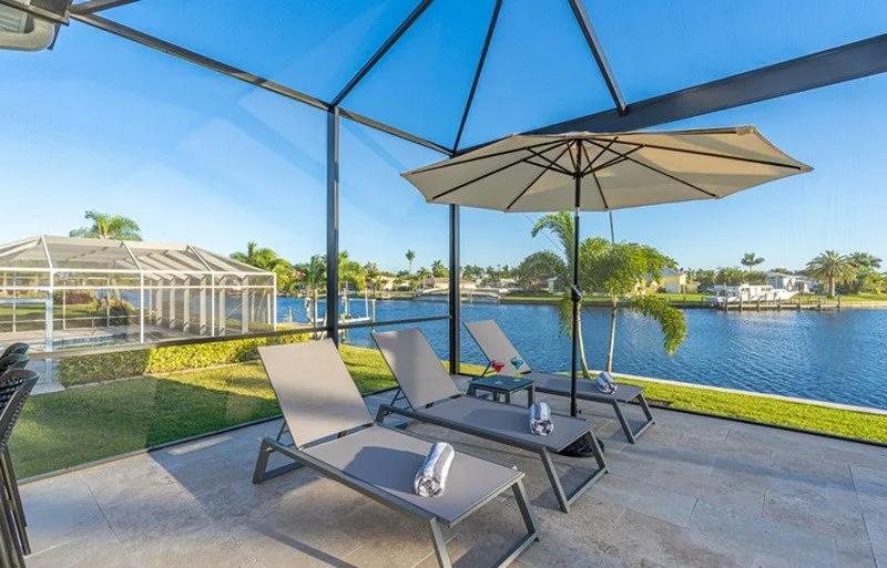 Intervillas Florida - Villa Easy Living, Beautiful Villa rental in Cape Coral has 3 bedrooms, 3 bathrooms, 6 sleeps, 7 minimum stay Villa for rent in Cape Coral Florida with the amenities and near by attractions , Air Conditioning, Balcony, Beach Chairs, Bicycles, Communal Pool, Deck/Patio, Dock/Boat Slip, Free WiFi, Full Kitchen, Garage, Heated Pool, Hot Tub, Internet, Kid Friendly, Lanai, Linens Provided, No Pets Allowed, Non-Smoking, Parking, Pool Table, Private Pool, Swimming pool, Towels Provided, Washing Machine, Wireless Internet, Blender, Cable/Satellite TV, Ceiling Fans, Clothes Dryer, Coffee Maker , Dishes & Utensils, Dishwasher, DVD Player, Freezer, Hair Dryer , Ice Maker, Iron & Board , Microwave, Outdoor Grill, Oven, Refrigerator, Stove, Telephone, Television, Toaster, Washer/Dryer Solar heating for the pool, Salt water pool, Boat, Outdoor Whirlpool, Spa, German Programs, Barbecue Outdoor Kitchen, Highspeed WLAN, Soundbar, Board Games, Table tennis, Golf, Luxury Homes, Coolbox, Beach towels, Deck chairs, Bath towelsv, Covered seating area, 2 Garden-Chairs, 6 Deck-Chair, Boat lift, Cutlery & Glasses, Cold water dispenser, Ceramic / ceramic hob, Kitchen bar, High Chair