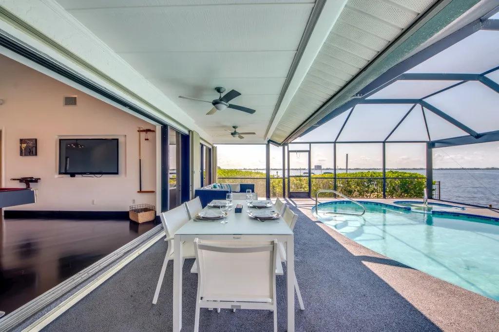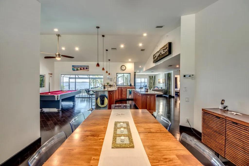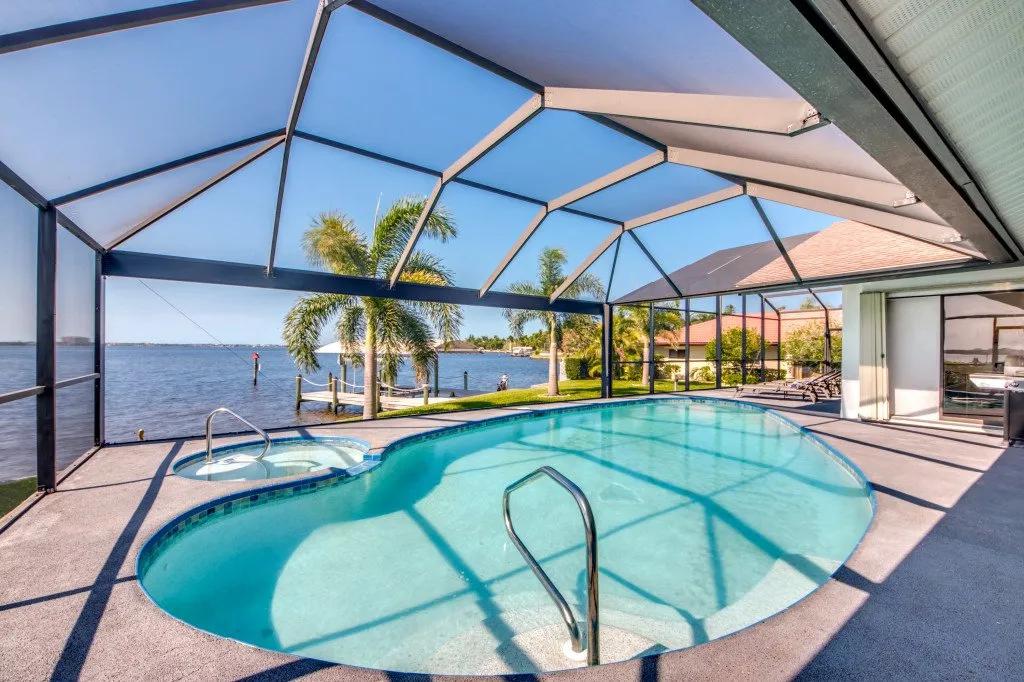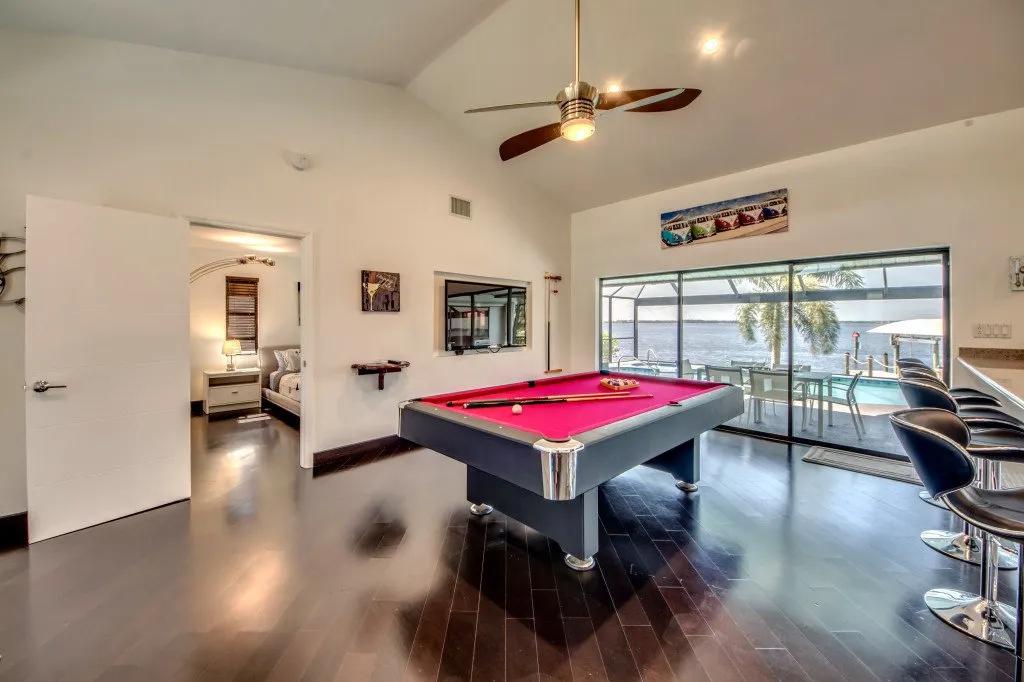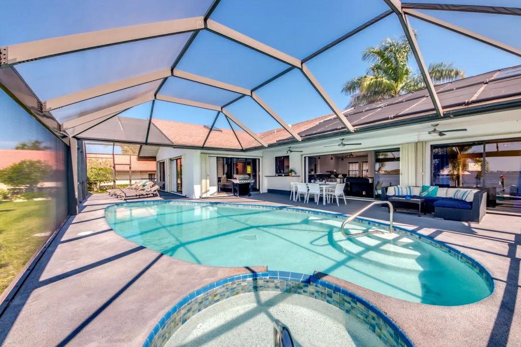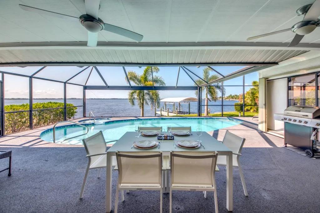 Intervillas Florida - Villa Laguna, Beautiful Villa rental in Cape Coral has 3 bedrooms, 3 bathrooms, 6 sleeps, 7 minimum stay Villa for rent in Cape Coral Florida with the amenities and near by attractions , Air Conditioning, Dock/Boat Slip, Free WiFi, Full Kitchen, Garage, Heated Pool, Internet, Lake View, No Pets Allowed, Parking, Pool Table, Private Pool, Swimming pool, Towels Provided, Washing Machine, Water View, Wireless Internet, Cable/Satellite TV, Clothes Dryer, Coffee Maker , Dishes & Utensils, Dishwasher, Freezer, Hair Dryer , Ice Maker, Microwave, Outdoor Grill, Oven, Refrigerator, Telephone, Television, Toasterstereo system, Familyfriendly, luxury, gas grill, Golf vacations, 6 garden chairs, garden, Covered seating area, 6 chairs, boat launch, motorboat, boat lift, Cutlery & glasses, Ceramic / ceramic hob, bed linen, Water cooler, cooling box, Seating for 6 persons