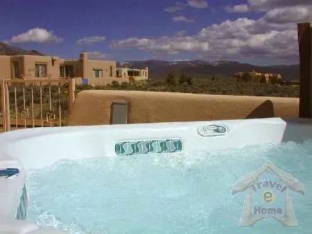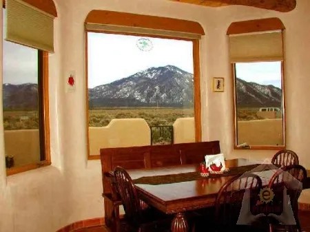 Owner's statement: Welcome to Hale de Taos. "Hale" Hawaiian for "House" combines our Hawaiian heritage and our love for Taos." This gracious home was completed in 2002 and was designed to capture the spectacular views of the Sangre de Cristo Mountains including the majestic Wheeler Peak. The oversized windows in dining and living rooms provide MILLION DOLLAR views and allow guests to watch the sunrise over the mountains while eating breakfast at the dining table or while relaxing in the spacious living room. Enjoy the splendor of the sunsets from the large flagstone main patio (with spa) or lounge in the privacy of the master bedroom patio. Surrounded by the comforts of old world furnishings from England, France, and Mexico you will be captured by the charm not only of this home but also by the natural sagebrush surroundings so acclaimed by years of Taos visitors. Whether you come to historic Taos to enjoy the world renown skiing, golfing, fishing, hiking, art galleries and restaurants, or just to relax, Hale de Taos is conveniently located and thoughtfully furnished to insure guests a grand and memorable respite in Taos, New Mexico. Enjoy your stay, and come back often!