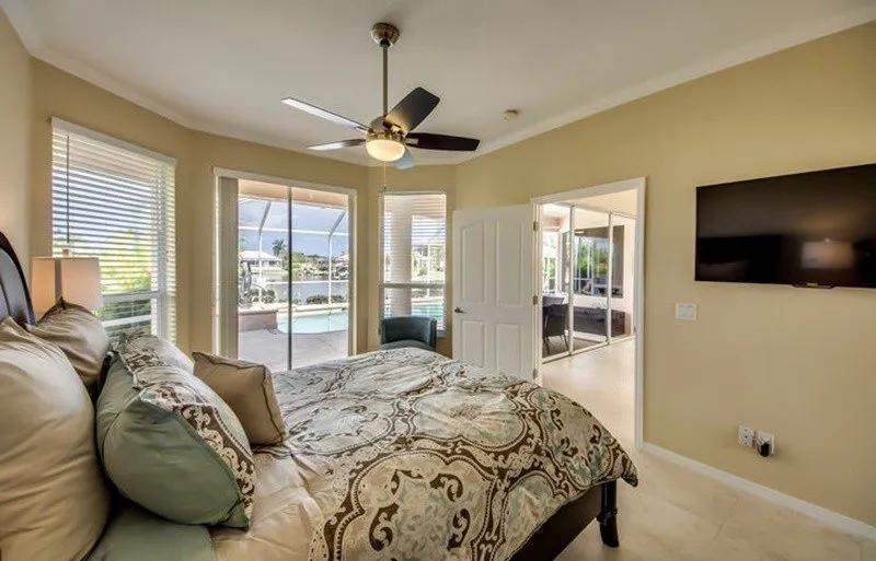 Intervillas Florida - Villa Bellevue, Beautiful Villa rental in Cape Coral has 3 bedrooms, 3 bathrooms, 6 sleeps, 7 minimum stay Villa for rent in Cape Coral Florida with the amenities and near by attractions , Balcony, Free WiFi, Full Kitchen, Garage, Heated Pool, Internet, No Pets Allowed, Non-Smoking, Parking, Private Pool, Swimming pool, Towels Provided, Washing Machine, Wireless Internet, Cable/Satellite TV, Ceiling Fans, Clothes Dryer, Coffee Maker , Dishes & Utensils, Dishwasher, Freezer, Hair Dryer , Ice Maker, Iron & Board , Microwave, Outdoor Grill, Oven, Refrigerator, Telephone, Television, ToasterMP3 player connection, stereo system, Golf vacations, luxury, gas grill, 6 garden chairs, 2 bicycles, garden, Covered seating area, 7 chairs, breakfast terrace, pool terrace, canal terrace, boat launch, boat lift, motorboat, Cutlery & glasses, Ceramic / ceramic hob, mixer, bed linen, Water cooler, alarm clock, cooling box