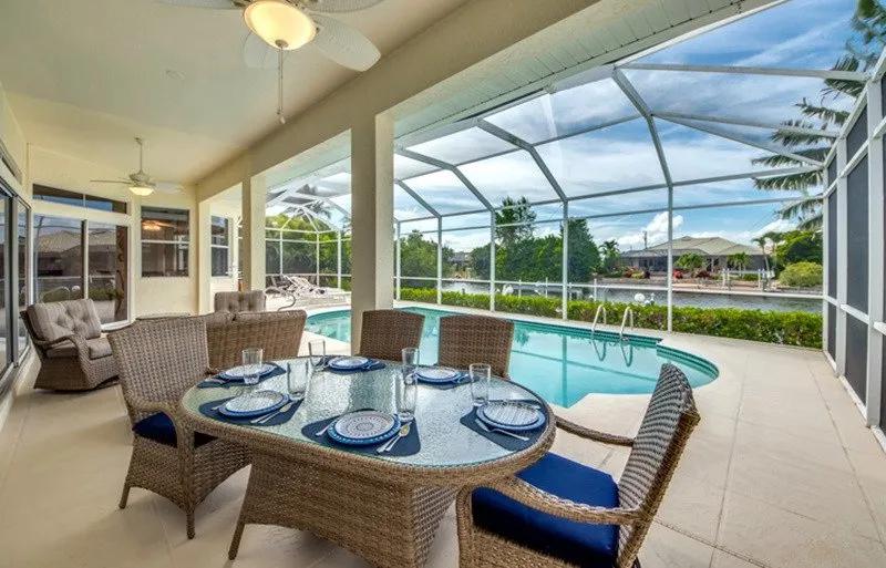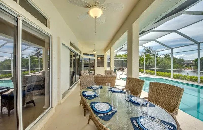 Intervillas Florida -Villa Kokomo, Beautiful Villa rental in Cape Coral has 3 bedrooms, 2 bathrooms, 6 sleeps, 7 minimum stay Villa for rent in Cape Coral Florida with the amenities and near by attractions , Air Conditioning, Beach Chairs, Free WiFi, Garage, Heated Pool, Linens Provided, No Pets Allowed, Non-Smoking, Private Pool, Swimming pool, Towels Provided, Washing Machine, Wireless Internet, Blender, Cable/Satellite TV, Ceiling Fans, Clothes Dryer, Coffee Maker , Dishes & Utensils, Dishwasher, DVD Player, Freezer, Hair Dryer , Ice Maker, Iron & Board , Microwave, Outdoor Grill, Oven, Refrigerator, Stove, Telephone, Television, Toaster, Washer/Dryer Bike, MP3 player connection, Nespresso coffee machine, Stereo, CD player, Golf, Luxury Homes, Family friendly, Deck chairs, Beach towels, Covered seating area, Garden, 8 Garden-Chairs, 5 Deck-Chair, 4 Bicycles, Tableware, Ceramic / ceramic hob, Cutlery & Glasses, Highspeed WLAN, High Chair, Coolbox, Cold water dispenser, Alarm clock, Alarm clock
