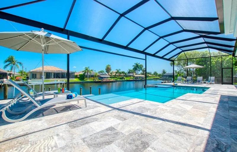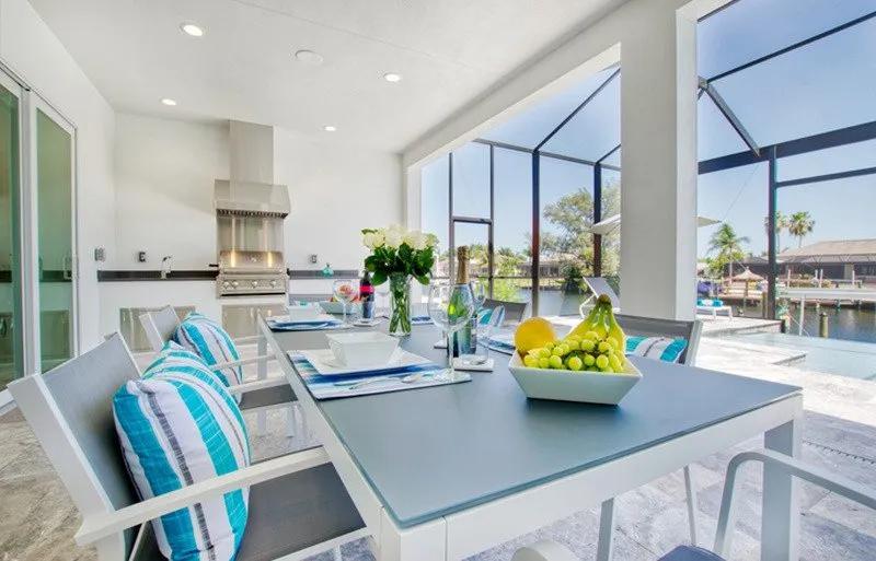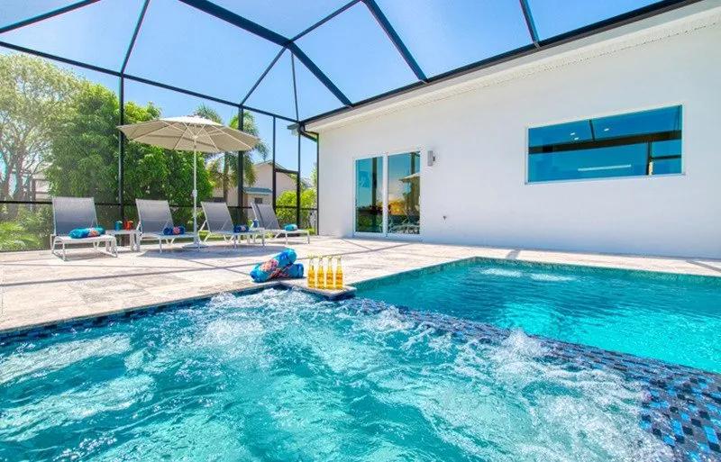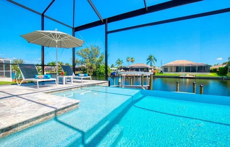 Intervillas Florida - Villa Splendid, Beautiful Villa rental in Cape Coral has 3 bedrooms, 3 bathrooms, 6 sleeps, 7 minimum stay Villa for rent in Cape Coral Florida with the amenities and near by attractions , Air Conditioning, Bicycles, Dock/Boat Slip, Free WiFi, Garage, Heated Pool, Kayak / Canoe, Linens Provided, No Pets Allowed, Non-Smoking, Parking, Private Pool, Swimming pool, Towels Provided, Washing Machine, Wireless Internet, Blender, Cable/Satellite TV, Ceiling Fans, Clothes Dryer, Coffee Maker , Dishes & Utensils, Dishwasher, Freezer, Hair Dryer , Ice Maker, Iron & Board , Microwave, Outdoor Grill, Oven, Refrigerator, Stove, Telephone, Television, Toaster, Washer/Dryer Bike, Nespresso coffee machine, Stereo, Luxury Homes, Family friendly, Deck chairs, Garden, 6 Garden-Chairs, 4 Deck-Chair, Covered seating area, 4 Bycles, Boat lift, at the water (river / lake), Tableware, Ceramic / ceramic hob, Cutlery & Glasses, Highspeed WLAN, Cold water dispenser, Kitchen bar