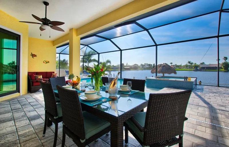 Intervillas Florida - Villa Solaris at the lake, Beautiful Villa rental in Cape Coral has 3 bedrooms, 3 bathrooms, 6 sleeps, 7 minimum stay Villa for rent in Cape Coral Florida with the amenities and near by attractions , Air Conditioning, Balcony, Beach Chairs, Bicycles, Dock/Boat Slip, Free WiFi, Full Kitchen, Garage, Heated Pool, Heating, Internet, Kayak / Canoe, Linens Provided, No Pets Allowed, Non-Smoking, Not Suitable for Children, Parking, Pool Table, Private Pool, Swimming pool, Towels Provided, Washing Machine, Wireless Internet, Blender, Cable/Satellite TV, Ceiling Fans, Clothes Dryer, Coffee Maker , Dishes & Utensils, Dishwasher, DVD Player, Freezer, Hair Dryer , Ice Maker, Iron & Board , Microwave, Outdoor Grill, Oven, Refrigerator, Stove, Telephone, Television, Toaster, Washer/Dryer Whirlpool, Luxury Homes, Golf, Family friendly, Beach towels, 6 Deck-Chair, 6 Garden-Chairs, Tiki Hut, Tableware, Ceramic / ceramic hob, Coolbox, Cold water dispenser, Kitchen bar, Seating for 6 people