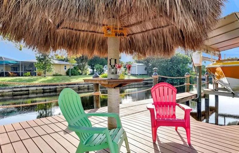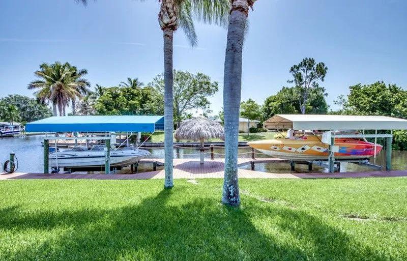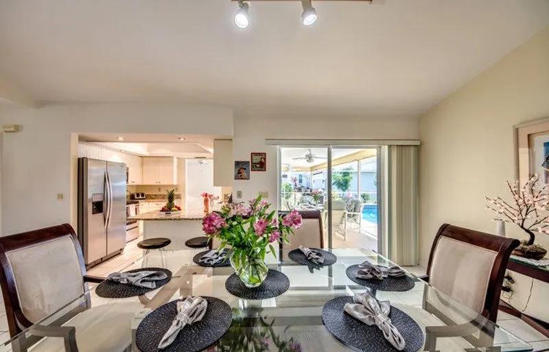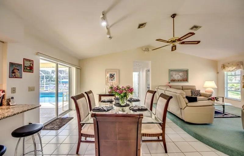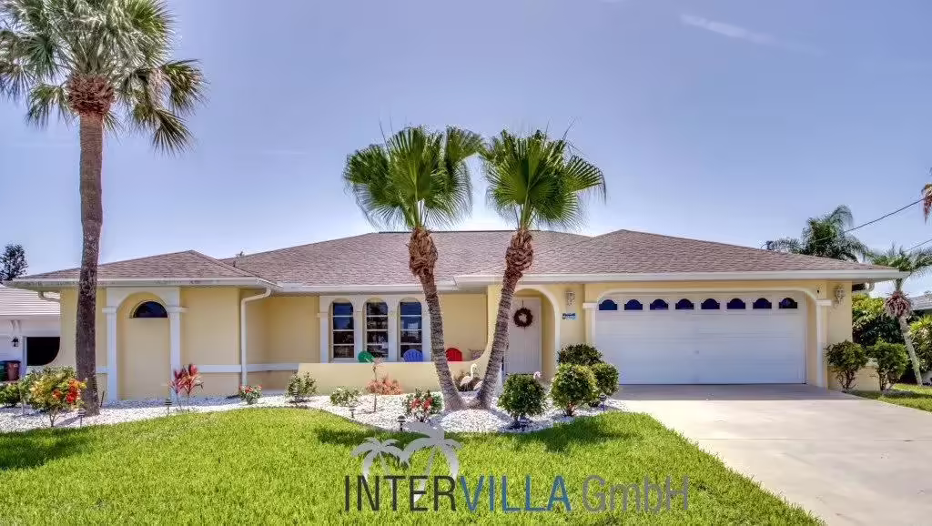 Intervillas Florida - Villa Tropicana, Beautiful Villa rental in Cape Coral has 3 bedrooms, 3 bathrooms, 6 sleeps, 7 minimum stay Villa for rent in Cape Coral Florida with the amenities and near by attractions , Air Conditioning, Balcony, Beach Chairs, Beach View, Deck/Patio, Dock/Boat Slip, Free WiFi, Full Kitchen, Garage, Heated Pool, Hot Tub, Internet, Kayak / Canoe, Kid Friendly, Lanai, Linens Provided, No Pets Allowed, Non-Smoking, Parking, Private Pool, Towels Provided, Washing Machine, Wireless Internet, Blender, Cable/Satellite TV, Ceiling Fans, Clothes Dryer, Coffee Maker , Dishes & Utensils, Dishwasher, Freezer, Hair Dryer , Ice Maker, Iron & Board , Microwave, Outdoor Grill, Oven, Refrigerator, Stove, Telephone, Television, Toaster, Washer/Dryer Outdoor Whirlpool, Spa, Bike, Tiki-Hut, Solar heating for the pool, Stereo, Golf, Luxury Homes, Beach towels, Coolbox, 4 Deck-Chair, Covered seating area, Bath towels, Boat lift, Motorboat, Cutlery & Glasses, Barbecue, Ceramic / ceramic hob, Kitchen bar, Cold water dispenser, High Chair