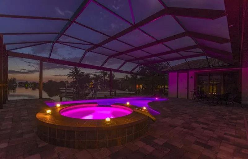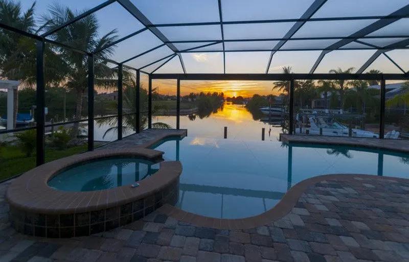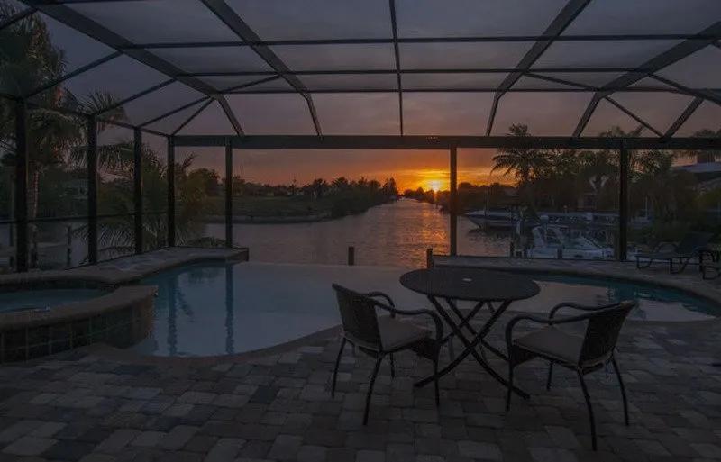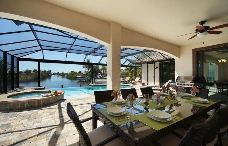 Intervillas Florida - Villa Garzetta, Beautiful Villa rental in Cape Coral has 4 bedrooms, 3 bathrooms, 8 sleeps, 7 minimum stay Villa for rent in Cape Coral Florida with the amenities and near by attractions , Air Conditioning, Beach Chairs, Dock/Boat Slip, Full Kitchen, Garage, Heated Pool, Linens Provided, No Pets Allowed, Non-Smoking, Parking, Pool Table, Private Pool, Swimming pool, Towels Provided, Washing Machine, Wireless Internet, Cable/Satellite TV, Ceiling Fans, Clothes Dryer, Coffee Maker , Dishwasher, Freezer, Ice Maker, Iron & Board , Microwave, Oven, Refrigerator, Telephone, Television, ToasterOutdoor Whirlpool/Spa, 2 Single beds, Luxury Homes, Golf, Family friendly, Deck chairs, Gas Grill outside, 9 Deck-Chair, Covered seating area, 12 Garden-Chairs, water (river / lake), Mixer, Cutlery & Glasses, Ceramic / ceramic hob, Barbecue, Tableware, Coolbox, Iron, Cold water dispenser, High Chair, Highspeed WLAN, Bed linen, Seating for 8 people