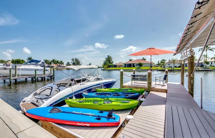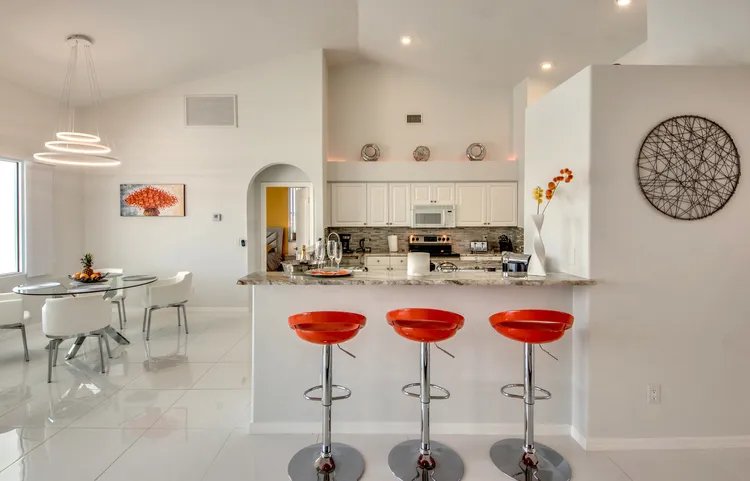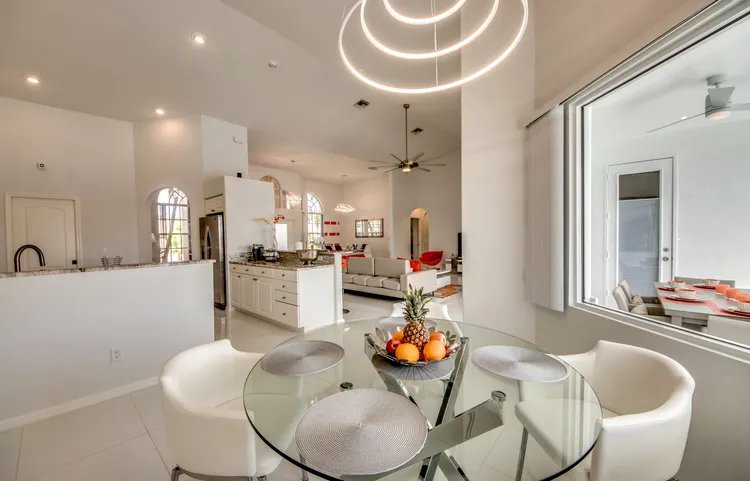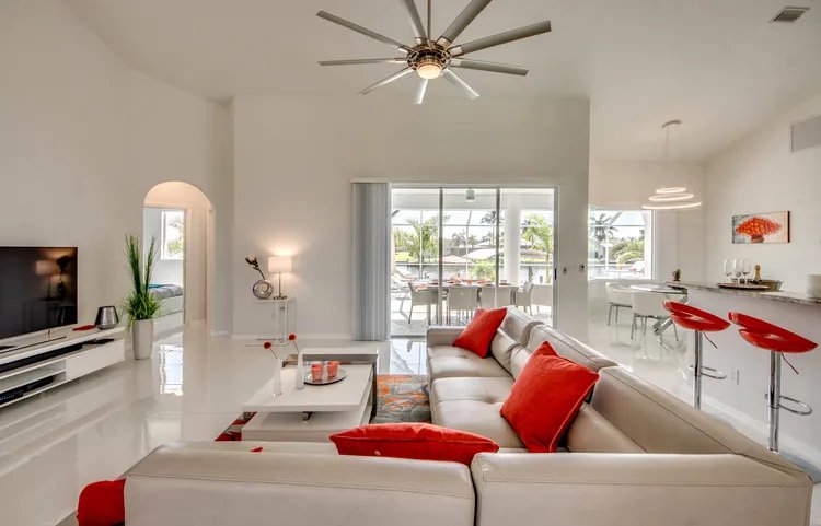 Villa White Style, Beautiful Villa rental in Cape Coral has 4 bedrooms, 2 bathrooms, 8 sleeps, 7 minimum stay Villa for rent in Cape Coral Florida with the amenities and near by attractions , Air Conditioning, Beach Chairs, Deck/Patio, Garage, Kayak / Canoe, Parking, Swimming pool, Towels Provided, Washing Machine, Cable/Satellite TV, Ceiling Fans, Clothes Dryer, Coffee Maker , Dishwasher, Freezer, Ice Maker, Iron & Board , Microwave, Oven, Refrigerator, ToasterFlat iron, 3 TV, Highspeed WLAN, Golf, Luxury Homes, Coolbox, Covered seating area, 4 Deck-Chairs, Gas Grill outside, Bath towels, 3 Bicycles, Boat Dock, Boat lift, Cutlery & Glasses, Barbecue, Ceramic / ceramic hob, Cold water dispenser, Breakfast nook, Mixer, Kitchen bar