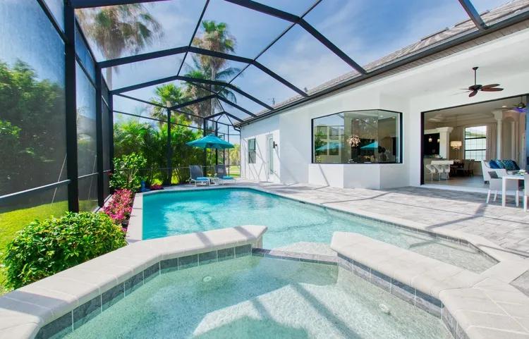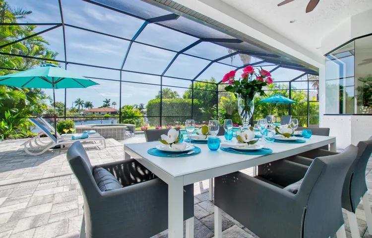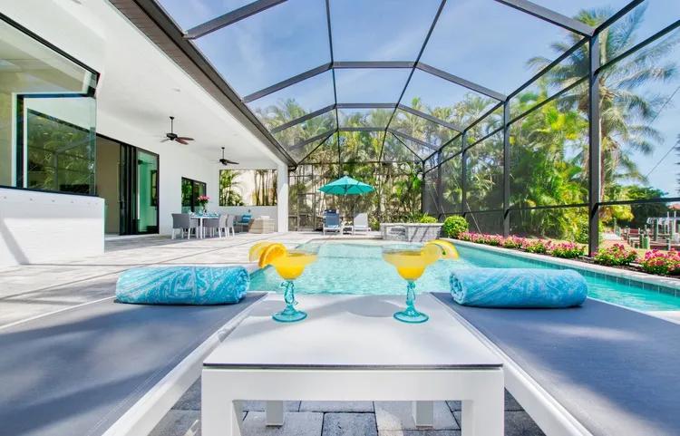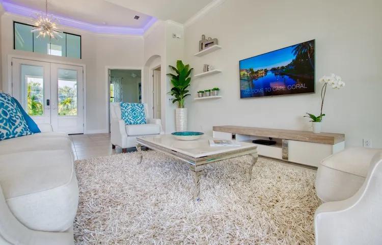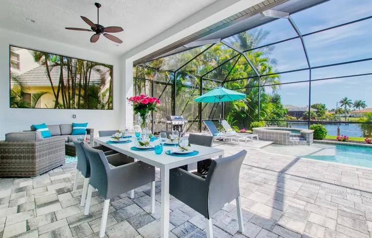 Villa Aguabella, Beautiful Villa rental in Cape Coral has 3 bedrooms, 3 bathrooms, 6 sleeps, 7 minimum stay Villa for rent in Cape Coral Florida with the amenities and near by attractions , Air Conditioning, Garage, Parking, Swimming pool, Towels Provided, Washing Machine, Ceiling Fans, Clothes Dryer, Dishwasher, Freezer, Ice Maker, Iron & Board , Microwave, Oven, Refrigerator, ToasterOutdoor Whirlpool/Spa, Barbecue Outdoor Kitchen, Nespresso coffee machine, Bike, Heatable Pool (electrical), Boatrental, Flat iron, Satellite, 4 TV, Highspeed WLAN, Bath towels, Gas Grill outside, Whirlpool, 6 Garden-Chairs, 4 Bicycles, Covered seating area, 2 Deck-Chairs, Boat Dock, Cold water dispenser, Barbecue, Mixer, Breakfast nook, Cutlery & Glasses, Ceramic / ceramic hob, Kitchen bar