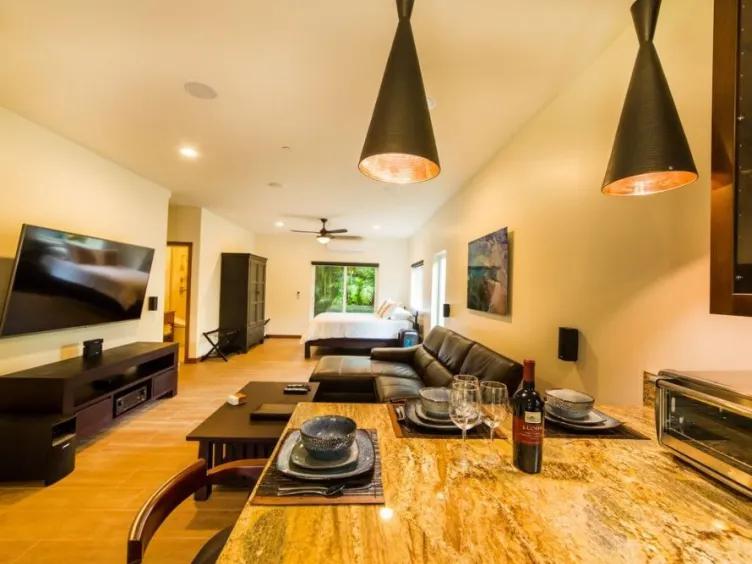 Luxurious, Modern, Spacious Studio at the Beach!, Beautiful Studio rental in Sunset Beach has 1 bedrooms, 1 bathrooms, 3 sleeps, 1 minimum stay Studio for rent in Sunset Beach Hawaii with the amenities and near by attractions , Air Conditioning, Beach Chairs, Paper Towels, Bicycles, Deck/Patio, Free WiFi, Heating, Internet, Kitchenette, Linens Provided, Managed by Owner, No Pets Allowed, Non-Smoking, Outdoor Shower, Parking, Towels Provided, Wireless Internet, Washing Machine, Fire extinguisher, No Smoking, No parties/events, Smoke detector, Exterior lighting, Blender, Microwave, Cable/Satellite TV, Outdoor Grill, Television, Ceiling Fans, Freezer, Toaster, Coffee Maker , Hair Dryer , Refrigerator, Washer/Dryer , Dishes & Utensils, Iron & Board , Dishwasher, Coffee Grinder, Heater, Clothes Dryer, Ice Maker, Basic Soaps, Toilet Paper, Living Room, Kettle, HangersBikes, Beach Chairs, Coolers, BBQ, Queen Bed, Amazing Beach a stone's throw away, Outdoor Shower for the Beach, Spill Air Conditioning/Heating, Dining Room, Basketball, Fishing, Hunting, Kayaking, Sailing, Swimming, Surfing, Snorkeling, Marine Life Park, Near Water Park, Near Beach, Near Shopping, Boating, Hiking, Jet Skiing, Snorkeling, Tennis, Whale Watching, Dolphins, Near Golf, Near Restaurants, Near Grocery Store