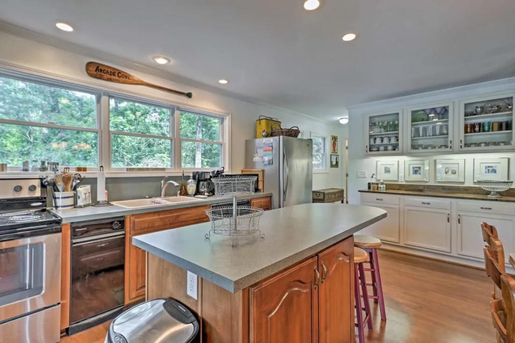 Arcade Cove, Beautiful House rental in Alabama has 4 bedrooms, 4 bathrooms, 10 sleeps, 1 minimum stay House for rent in Alabama United States of America with the amenities and near by attractions , Air Conditioning, Beach Chairs, Paper Towels, Deck/Patio, Dock/Boat Slip, Fireplace, Free WiFi, Full Kitchen, Internet, Kayak / Canoe, Lake View, Lakefront, Linens Provided, Managed by Owner, No Pets Allowed, Non-Smoking, Parking, Porch / Veranda, Towels Provided, Water View, Waterfront, Wireless Internet, Washing Machine, Kitchen, Children Welcome, Fire extinguisher, Children allowed, Smoke detector, Carbon-monoxide detector, Exterior lighting, Blender, Microwave, Cable/Satellite TV, DVD Player, Outdoor Grill, Television, Ceiling Fans, Oven, Toaster, Coffee Maker , Hair Dryer , Refrigerator, Washer/Dryer , Dishes & Utensils, Iron & Board , Stove, Dishwasher, First-aid kit, Toilet Paper, Hangers, Microwave/Air Fryer, Ironing BoardComplimentary Toiletries, Outdoor Dining Area, Fire Pit, Patio Furniture, Charcoal Grill, Private Entrance, Off Street Parking, Onsite Laundry Facilities, Gas Grill, Canoe, Beach Umbrella, Ensuite Bath Bedroom, Alarm Clock, Central Heating, Bedroom Closet, Books, Flat-Screen TV, VCR, CD Player, Cycling, Jet Skiing, Boating, Hiking, Kayaking, Swimming, Farmers Market, Golf, Restaurants, Fishing, Horseback Riding, Shopping, Waterskiing, Fly Fishing Internet Connection, Laundry Detergent, Bathtub or Shower On First, Suitable for Elderly, Minimum Age Requirement, Suitable for Children, Flexible Max Occupancy, Dishware and Flatware, Crock Pot