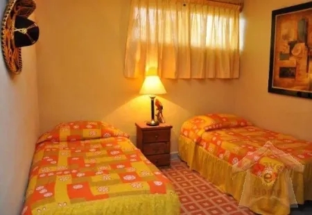 This rustic two bedroom condo with terrace overlooking the pool and lush gardens, sleeps up to 4 persons, but can be rented as a one bedroom unit for two at a more affordable rate (contact us for more information). The master bedroom has a queen size bed and the second bedroom has two twin size beds. The kitchen is fully equipped with all the necessary appliances such as refrigerator, stove top, utensils, microwave, coffeemaker, blender, toaster and drinkable water.