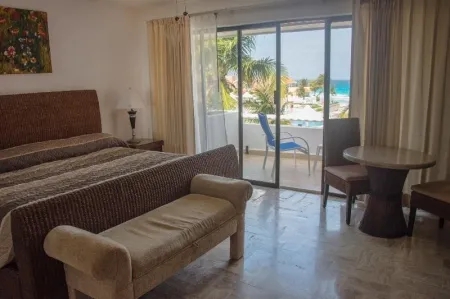 You will enjoy the spectacular ocean views from every room in this luxuriously decorated three bedroom condo, located on the 6th floor in the spectacular condo development Bay View Grand in the Cancun hotel zone. The condo was featured in the June/July 2008 edition of Casa & Estilo Internacional, a Miami based magazine. The interior decor, furniture, amenities, top quality bedding and linens were carefully selected making this condo the ultimate vacation experience. This condo has three large bedrooms, walk-in closets, four bathrooms, two living room areas, interior dining area accommodating six persons, with an addition table on the terrace accommodating six more.