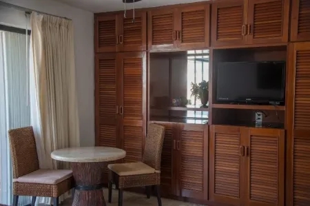 A fully equipped kitchen and wall to ceiling windows throughout the condo. Phone calls to landlines in the US, Canada and some European countries are complimentary. You can enjoy your private Jacuzzi on the wrap-around balcony or one of the infinity pools as part of the condo complex. As a guest you also have access to the fitness center, SPA, tennis courts, putting green, golf course, business center, children game area, maid & concierge services. It's only a short walk to restaurants, shopping and nightlife.