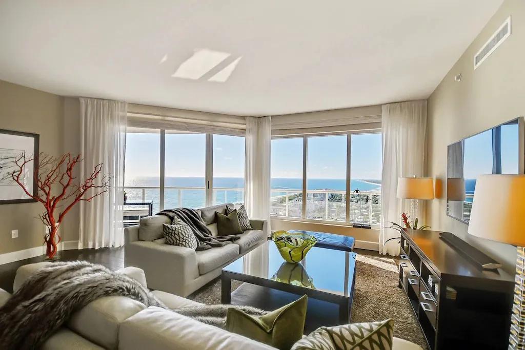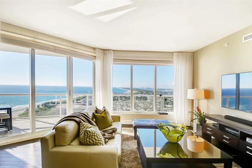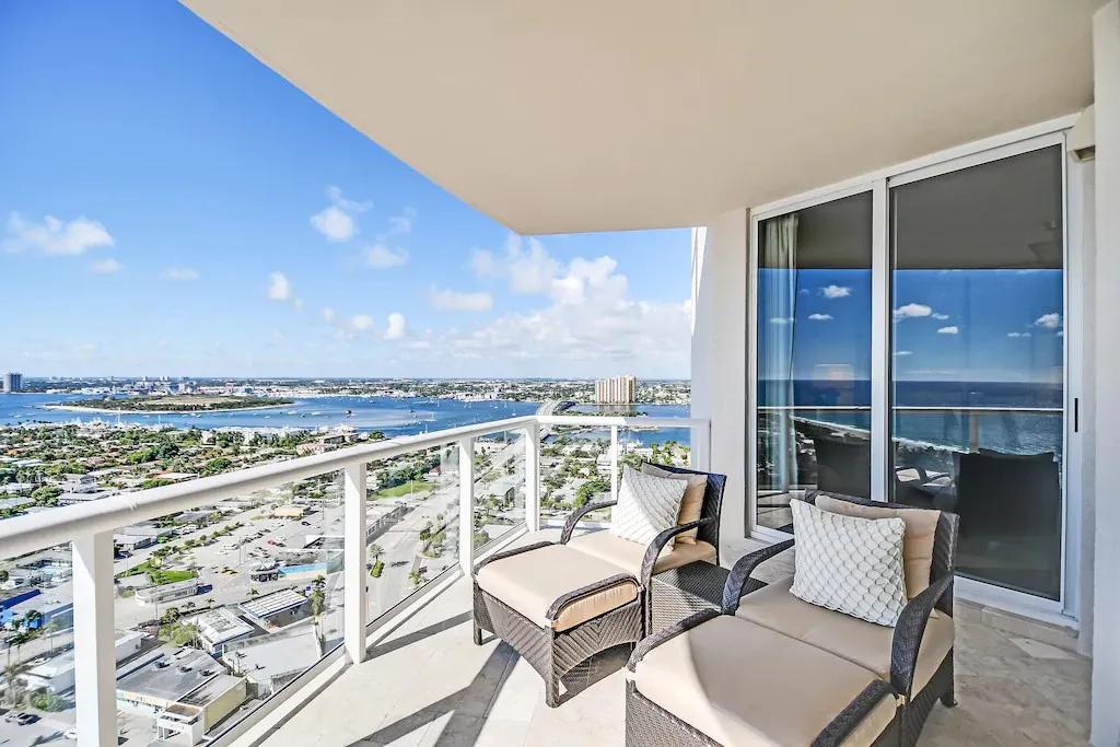Multimillion$ 24th fl Ritz Condo -Spectacular Ocean View- Ultimate Luxury, Beautiful Condo rental in Riviera beach has 2 bedrooms, 2.5 bathrooms, 5 sleeps, 4 minimum stay Condo for rent in Riviera beach Florida with the amenities and near by attractions , Air Conditioning, Balcony, Communal Pool, Elevator, Exterior lighting, Fire extinguisher, Garage, Heating, Hot Tub, Internet, Kitchen, Linens Provided, No Smoking, Parking, Pool Table, Smoke detector, Swimming pool, Towels Provided, Washing Machine, Blender, Cable/Satellite TV, Clothes Dryer, Coffee Maker , Dining Area, Dishes & Utensils, Dishwasher, First-aid kit, Hair Dryer , Heater, Ice Maker, Iron & Board , Living Room, Microwave, Outdoor Grill, Oven, Refrigerator, Stove, Television, Toaster, Washer/Dryer Deadbolt lock, Beach, Resort, Fitness Room/Equipment, Wireless Internet, Pantry Items, Books, Tennis, Long-term Renters Welcome, Sauna, Spa Whirlpool, Concierge, Housekeeper Optional