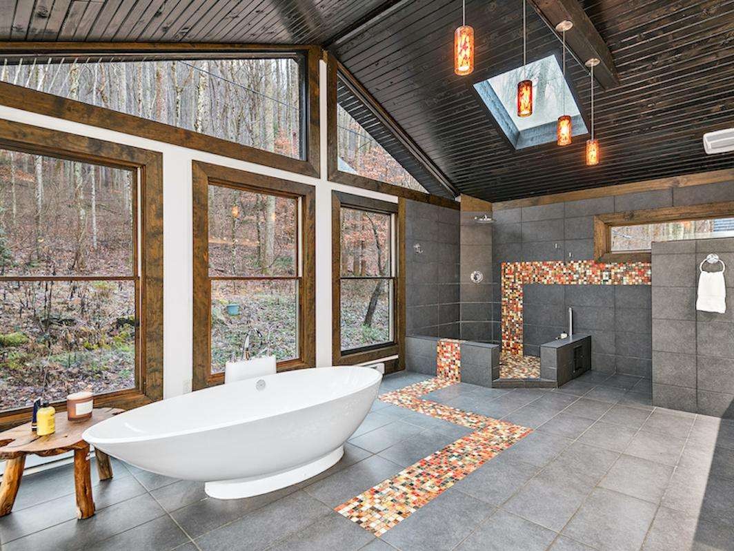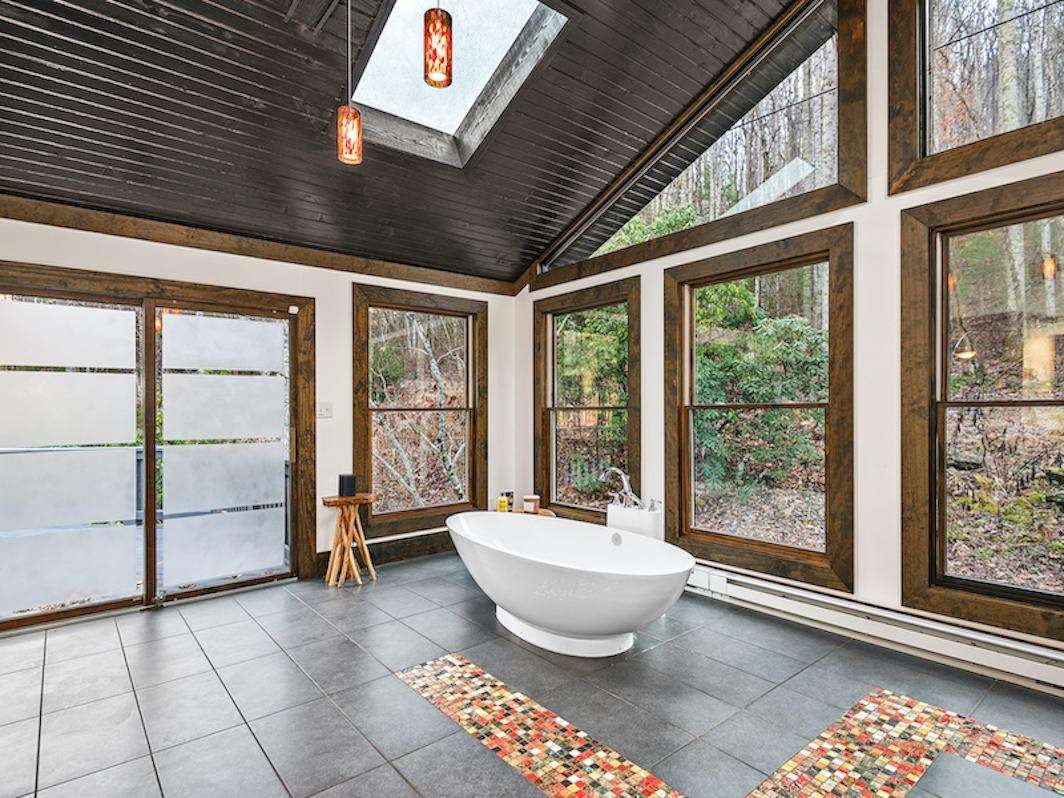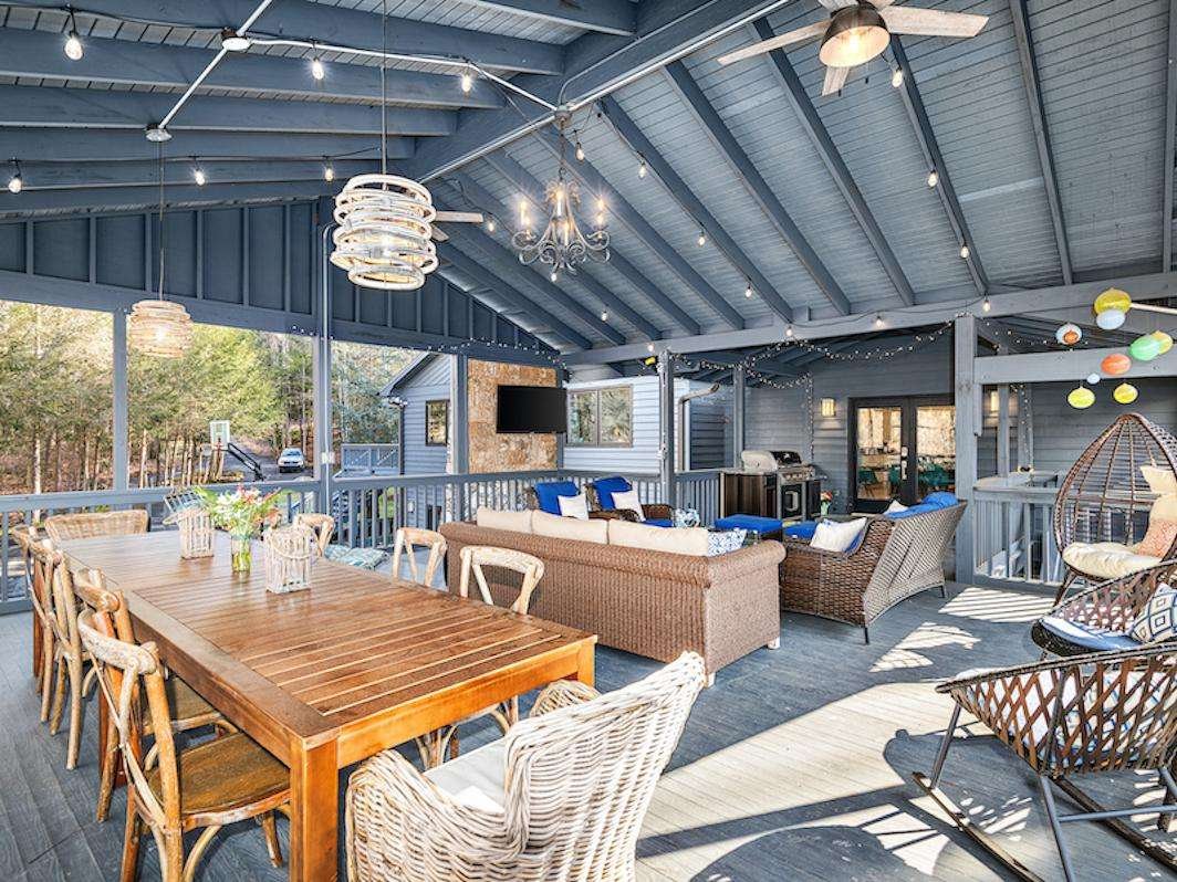 Out of the Blue, Beautiful House rental in Asheville has 4 bedrooms, 4.5 bathrooms, 8 sleeps, 3 minimum stay House for rent in Asheville North Carolina with the amenities and near by attractions , Air Conditioning, Paper Towels, Deck/Patio, Fireplace, Fitness Room , Free WiFi, Full Kitchen, Game Room, Heating, Internet, Kid Friendly, Linens Provided, Managed by Property Manager, No Pets Allowed, Non-Smoking, Parking, Porch / Veranda, Towels Provided, Wireless Internet, Washing Machine, Children Welcome, Fire extinguisher, No Smoking, No parties/events, Smoke detector, Carbon-monoxide detector, Exterior lighting, Blender, Microwave, Outdoor Grill, Television, Ceiling Fans, Oven, Toaster, Coffee Maker , Hair Dryer , Refrigerator, Washer/Dryer , Dishes & Utensils, Iron & Board , Stove, Dishwasher, First-aid kit, Dining Area, Basic Soaps, Toilet Paper, Kettle, HangersBooks, Games, Stereo, Central Heat, Game Room, King Bed, Cookware, Antiquing, Bird Watching, Gambling, Horseback Riding, Outlet Shopping, Shopping, Wildlife Viewing, Fitness Center, Hospital, Mountain, Gas Grill, Deadbolt Lock, Outdoor Lighting, Biking, Equestrian Events, Fishing Fly, Golfing, Hiking, Hot Air Ballooning, Kayaking, Mountain Biking, Rafting, Rock Climbing, Roller Blading, Tennis, Water Tubing, White Water Rafting, Family, Luxury