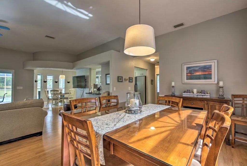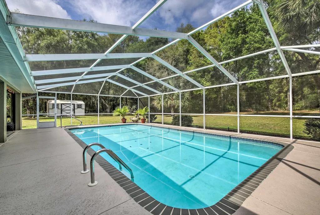 "Pointe of View" Casa Dunnellon with private pool!, Beautiful House rental in Citrus Springs has 3 bedrooms, 2 bathrooms, 8 sleeps, 2 minimum stay House for rent in Citrus Springs Florida with the amenities and near by attractions , Air Conditioning, Free WiFi, Full Kitchen, Internet, Kitchen, Linens Provided, No Smoking, Non-Smoking, Paper Towels, Parking, Towels Provided, Basic Soaps, Blender, Cable/Satellite TV, Ceiling Fans, Clothes Dryer, Coffee Grinder, Coffee Maker , Dining Area, Dishes & Utensils, Dishwasher, DVD Player, First-aid kit, Freezer, Hair Dryer , Hangers, Heater, Ice Maker, Iron & Board , Kettle, Living Room, Microwave, Outdoor Grill, Oven, Refrigerator, Shampoo, Stove, Telephone, Television, Toaster, Toilet Paper, Washer/Dryer