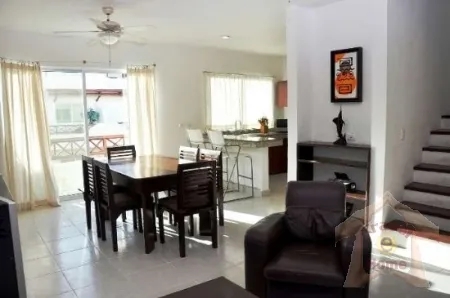 The large rooftop terrace is complete with hammocks, Jacuzzi, seating for four persons and a charcoal grill. This third floor holiday home rental is located within the gated condo development Margaritas 2 and is complete with a swimming pool and 24/7 security.