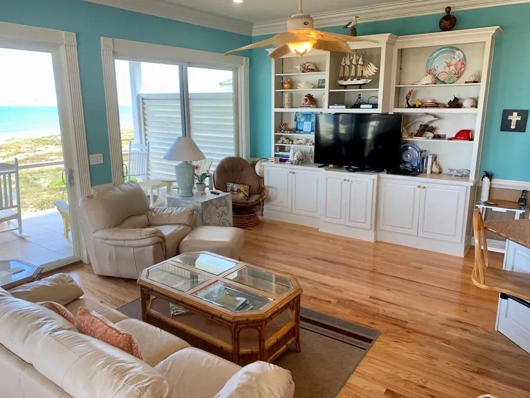 Jubilee at Cape San Blas, Beautiful House rental in Port St. Joe has 5 bedrooms, 6 bathrooms, 12 sleeps, 3 minimum stay House for rent in Port St. Joe Florida with the amenities and near by attractions , Air Conditioning, Balcony, Beach Chairs, Beach View, Beachfront, Deck/Patio, Elevator, Free WiFi, Full Kitchen, Heating, Internet, Kid Friendly, Linens Provided, No Pets Allowed, Non-Smoking, Ocean View, Oceanfront, Outdoor Shower, Parking, Screen Porch, Towels Provided, Waterfront, Wireless Internet, Blender, Cable/Satellite TV, Ceiling Fans, Coffee Maker , Dishes & Utensils, Dishwasher, DVD Player, Freezer, Hair Dryer , Iron & Board , Microwave, Outdoor Grill, Oven, Refrigerator, Stove, Telephone, Television, Toaster, Washer/Dryer Beach(onsite), Fishing(onsite), Hiking(onsite), Ocean(onsite), Snorkeling(onsite), Bicycling(< 1 mile), Boating(< 1 mile), Horseback Riding(< 1 mile), Jet Skiing(< 1 mile), Kayaking(< 1 mile), Park(< 1 mile), Playground(< 1 mile), Volleyball Court(< 1 mile), Sailing(1 mile), Golf(3 miles), Deep Sea Fishing(7 miles), Grocery Store(7 miles), Gym/Fitness Center(7 miles), Live Entertainment(7 miles), Scuba Diving(7 miles), Shopping Area(7 miles), Miniature Golf(23 miles)
