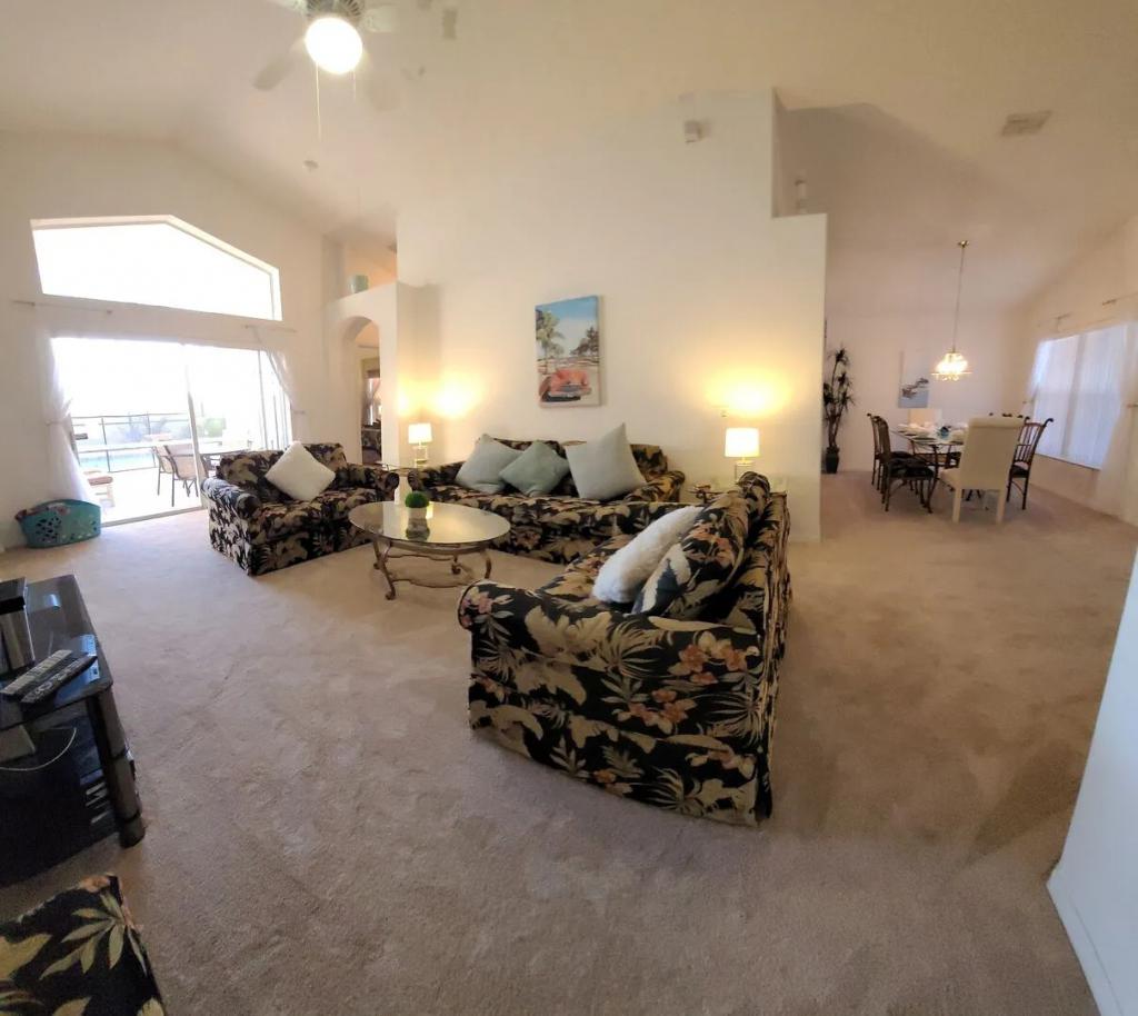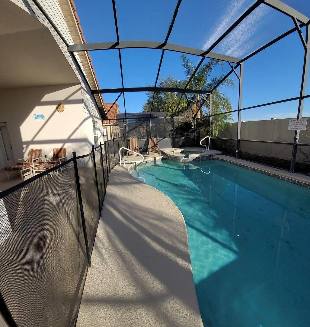 4 Bedroom Villa SOL826SC 4Bed Solana private pool home, Beautiful Villa rental in Davenport has 4 bedrooms, 3 bathrooms, 8 sleeps, 4 minimum stay Villa for rent in Davenport Florida with the amenities and near by attractions , Air Conditioning, Free WiFi, Towels Provided, Cable/Satellite TV, Coffee Maker , Dishwasher, DVD Player, Hair Dryer , Iron & Board , Kettle, Microwave, Oven, Toaster, Washer/Dryer Full Size Fridge, Cookware, utensils, plates, cups, mugs, High Chair, South Facing Pool, Community Pool, Kids Play Ground, Sheets, blankets and pillows provided, Games Room, No rear neighbors, Clubhouse, Sand Volleyball, Spa, Gas Pool Heating, Fitness Center, TV in every room