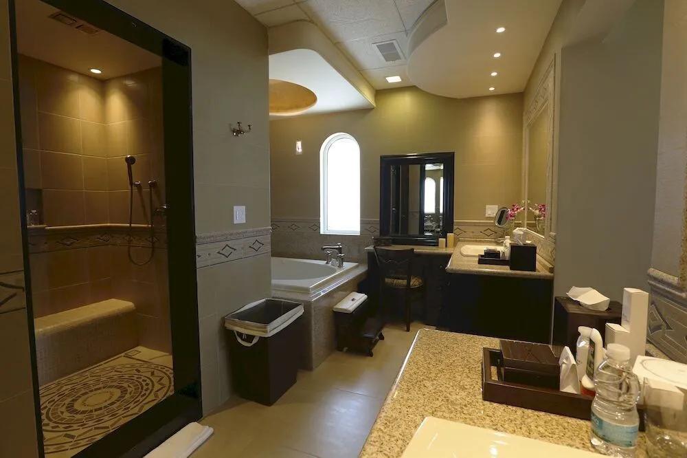 DELUXE JUNIOR SUITE ONLY: Has a Master Bed area comparable to that on the Master Suite side with king-size bed, pull down Murphy bed, desk, small sofa, and access to a deck with 2 chairs and a table, and views comparable to the Master Suite. The bathroom has 2 sinks, Jacuzzi tub, private toilet area, and separate shower area as well as several appliances (small frig with ice maker, microwave, nice coffee and espresso machines), as well as dishware, glasses, and tableware for 2-3 people. Approx.635 sf, sleeps 3