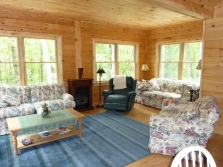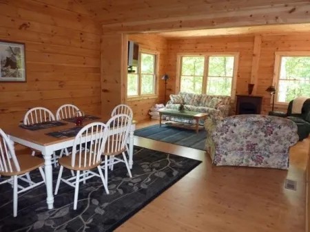 This lovely 3 BR Lake Holiday Travel Log Home Rental with pool table in family room. Lovely and spacious, new 3 bedrooms, 3 baths in a very private setting. Also features cathedral ceilings, free standing (gas burning stove) modern fully equipped kitchen, nicely furnished, large wrap around deck with patio furniture. This marvellous 3 BR Vacation Travel Lake Home Rental is located in a lake community. Close to Whitewater Rafting, mountain biking and all pocono attractions.