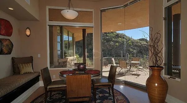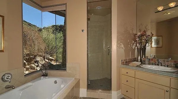 Eagles Nest, Beautiful House rental in Tucson has 4 bedrooms, 5 bathrooms, 8 sleeps, 1 minimum stay House for rent in Tucson Arizona with the amenities and near by attractions , Air Conditioning, Balcony, Beach Chairs, Paper Towels, Deck/Patio, Fireplace, Free WiFi, Full Kitchen, Heating, Hot Tub, Internet, Kid Friendly, Kitchenette, Linens Provided, Managed by Owner, No Pets Allowed, Non-Smoking, Outdoor Shower, Parking, Porch / Veranda, Private Pool, Towels Provided, Wireless Internet, Washing Machine, Kitchen, Children Welcome, Swimming pool, Fire extinguisher, Children allowed, No Smoking, No parties/events, Smoke detector, Carbon-monoxide detector, Exterior lighting, Mountain View, Blender, Microwave, Cable/Satellite TV, DVD Player, Outdoor Grill, Television, Ceiling Fans, Oven, Toaster, Coffee Maker , Hair Dryer , Refrigerator, Washer/Dryer , Dishes & Utensils, Iron & Board , Stove, Dishwasher, Coffee Grinder, Heater, First-aid kit, Clothes Dryer, Ice Maker, Dining Area, Basic Soaps, Toilet Paper, Living Room, Kettle, Shampoo, Hangers13 acres overlooking the Tucson Valley and City Lights with the Catalina Mountains and Canyons as a backdrop. Views are found from every room of the house. You will feel like your only neighbors are the birds and the bees. Home is in a private gated community with a private gated entrance if required. The home has large gathering areas (Great Room, Dining Room, etc.)and small cozy areas as well. There are 3 indoor fireplaces and an outdoor fireplace along with a Jacuzzi and Pool overlooking the Mountains and the City. The kitchen has everything necessary to prepare a fabulous meal and leads out to a patio where you can view Tucson's famous sunrises and sunsets as well as city lights and Mountain tops. The Master bedroom has a King Size bed and several seating areas including a single pull out couch and desk as well as a bathroom with double sinks, a jacuzzi tub, and two person shower. Two other bedrooms have Queen size beds and the separate mother-in-law quarters has a Queen size bed and queen sleeper sofa as well as a fireplace and kitchenette. All bedrooms have full bathrooms except the middle bedroom which has a hall bath and outside shower giving the home 5 bathrooms including the pool bathroom. There are books, games, and a switch video game player for the young ones. We provide beach towels and all toiletries making your packing a breeze. Give Barb a call with any questions. You will not be disappointed. This home is known for it's 5 star reviews on other websites and Barb goes out of her way to make it special for you.