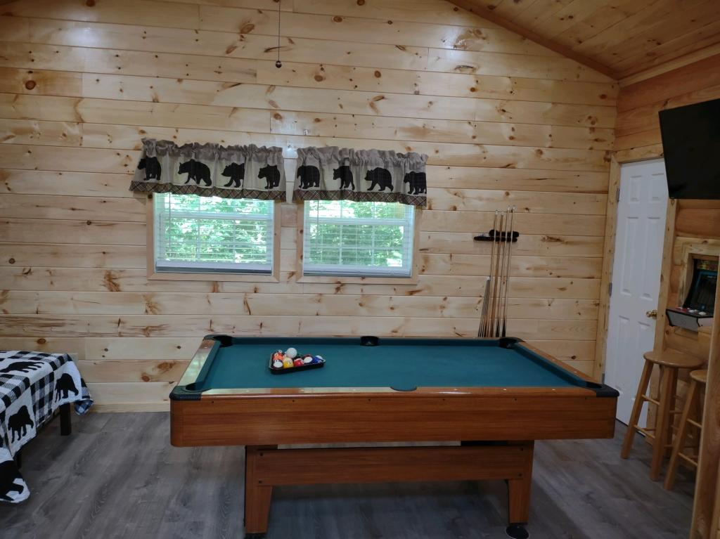 Mama Bear - Pigeon Forge & Gatlinburg Great Smoky Mountains, Beautiful Cabin rental in Pigeon Forge has 4 bedrooms, 2 bathrooms, 6 sleeps, 2 minimum stay Cabin for rent in Pigeon Forge Tennessee with the amenities and near by attractions , Air Conditioning, Paper Towels, Fireplace, Free WiFi, Full Kitchen, Game Room, Heating, Hot Tub, Internet, Kid Friendly, Linens Provided, Managed by Owner, Non-Smoking, Parking, Pet Friendly, Pool Table, Porch / Veranda, Towels Provided, Wheelchair Accessible, Wireless Internet, Washing Machine, Kitchen, Children Welcome, Fire extinguisher, Children allowed, No Smoking, Smoke detector, Exterior lighting, Mountain View, Blender, Microwave, Telephone, Cable/Satellite TV, DVD Player, Outdoor Grill, Television, Ceiling Fans, Freezer, Oven, Toaster, Coffee Maker , Hair Dryer , Refrigerator, Washer/Dryer , Dishes & Utensils, Iron & Board , Stove, Dishwasher, Heater, Clothes Dryer, Dining Area, Toilet Paper, Living Room, Kettle, HangersDeadbolt lock, Mountain View, Childs Highchair, Stereo, Game Room, Games, Games for Kids, Beach Towels, Outdoor Furniture, Spa Whirlpool(seat 4-6pp)