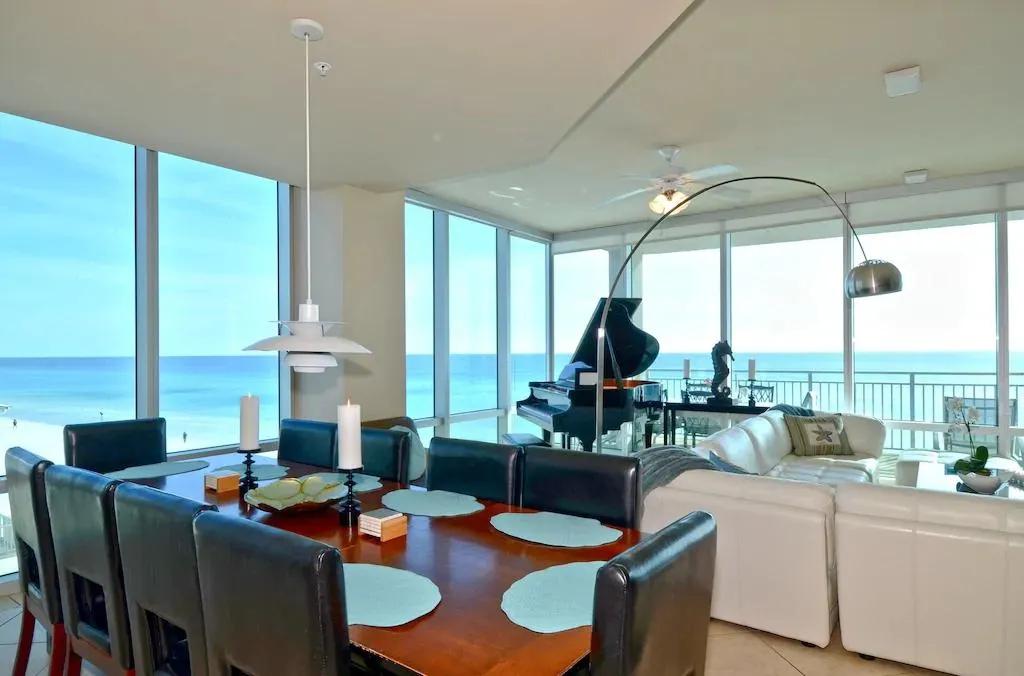 Seabliss ~Gulf Front, Luxury~ Walls of Windows!! , Beautiful Condo rental in Signature Beach has 4 bedrooms, 4 bathrooms, 13 sleeps, 1 minimum stay Condo for rent in Signature Beach Florida with the amenities and near by attractions , Air Conditioning, Beach Chairs, Beach View, Beachfront, Children allowed, Children Welcome, Communal Pool, Elevator, Fire extinguisher, Garage, Heating, Hot Tub, Internet, Linens Provided, No Pets Allowed, No Smoking, Ocean View, Oceanfront, Paper Towels, Parking, Swimming pool, Towels Provided, Washing Machine, Water View, Waterfront, Wireless Internet, Basic Soaps, Blender, Cable/Satellite TV, Clothes Dryer, Coffee Grinder, Coffee Maker , Dishes & Utensils, Dishwasher, DVD Player, Hair Dryer , Heater, Ice Maker, Microwave, Oven, Refrigerator, Stove, Telephone, Television, Toaster, Toilet Paper, Washer/Dryer fax, Pantry Items, Toys, Games, Books, Games for Kids, Stereo, Video Games, Long-term Renters Welcome, Spa Whirlpool, Outdoor Pool, Housekeeper Optional