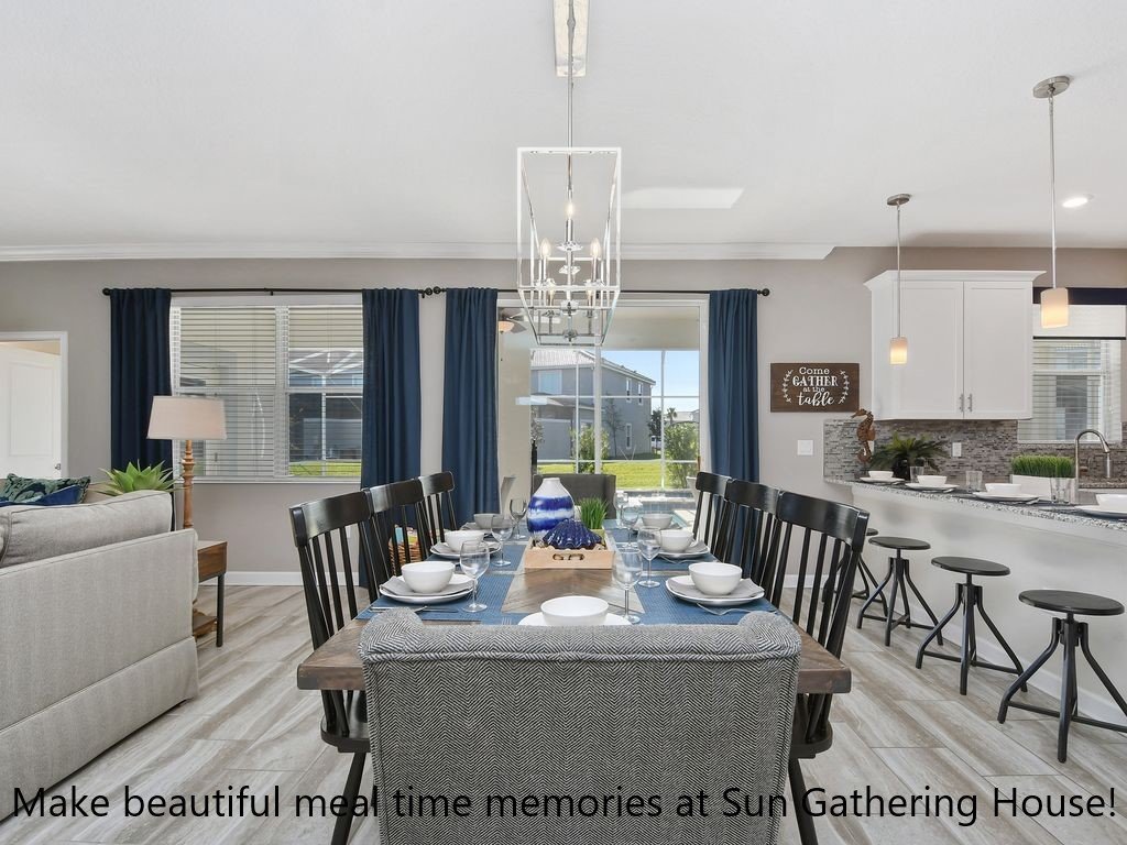 Sun Gathering House, Beautiful Villa rental in Davenport has 6 bedrooms, 6 bathrooms, 16 sleeps, 4 minimum stay Villa for rent in Davenport Florida with the amenities and near by attractions , Air Conditioning, Paper Towels, Deck/Patio, Free WiFi, Full Kitchen, Game Room, Garage, Heated Pool, Heating, Hot Tub, Internet, Kid Friendly, Lanai, Managed by Owner, No Pets Allowed, Non-Smoking, Parking, Private Pool, Towels Provided, Wireless Internet, Washing Machine, Kitchen, Children Welcome, Swimming pool, Fire extinguisher, Children allowed, No Smoking, No parties/events, Smoke detector, Carbon-monoxide detector, Exterior lighting, Blender, Microwave, Telephone, Cable/Satellite TV, DVD Player, Outdoor Grill, Television, Ceiling Fans, Freezer, Oven, Toaster, Coffee Maker , Hair Dryer , Refrigerator, Washer/Dryer , Dishes & Utensils, Iron & Board , Stove, Dishwasher, Heater, First-aid kit, Clothes Dryer, Ice Maker, Dining Area, Basic Soaps, Toilet Paper, Living Room, Kettle, ShampooPool and Spa heat and grill use is included.