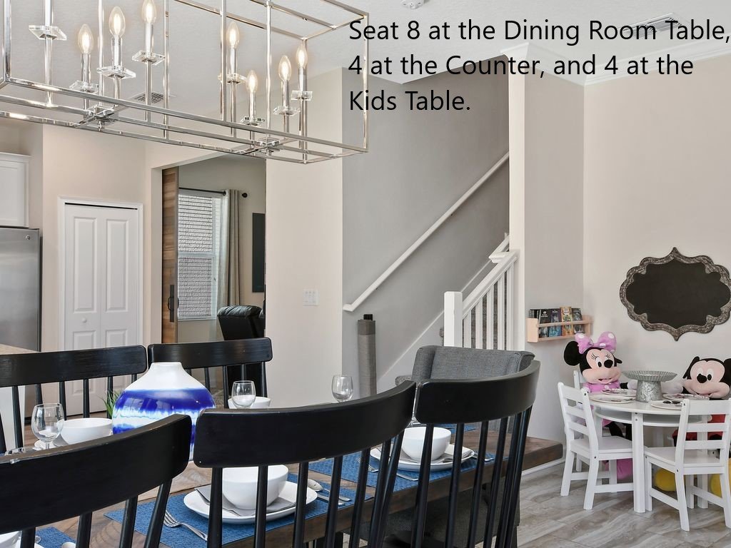 At Sun Gathering House the maximum number of adults is 8, the maximum number of children is 8. The total number of all is 16, only 8 of which can be adults. At Sun Gathering House there are 6 Bedrooms, 4 King bedrooms(one downstairs) and 2 multi bunk themed bedrooms. Three of the King bedrooms have private bathroom, one has jack and jill bathroom with the Disney themed bunk room. There is bathroom downstairs off the living room that opens out to the Lanai and pool area and another hallway bathroom upstairs for the game room and Star Wars themed bunk room. That is a total of 6 bathrooms.