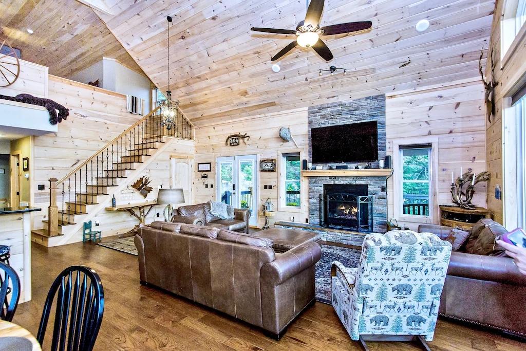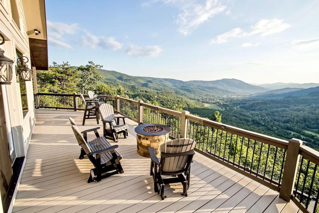 Enjoy the 1800 sq. ft. deck. Sit around the burn table with a glass of wine and watch the skies put on a show with a beautiful display of colors that only the Blue Ridge Mountains can provide. Or soak in the Large 5-person Hot Tub that has been thoughtfully situated to take in the amazing views!