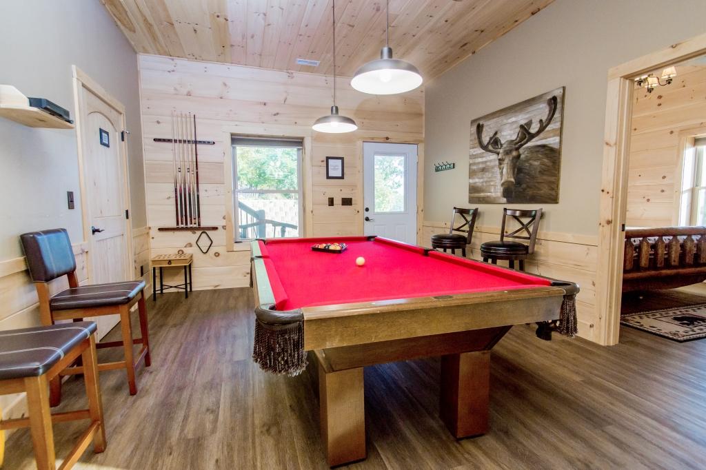 The game room on the 1st floor is sure to be a hit. It provides plenty of space and tables for your favorite board game play off. Enjoy the Pool table and watch your favorite movie.