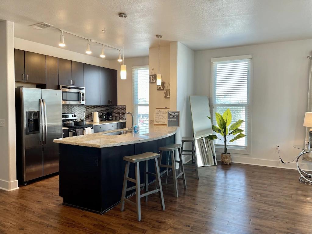 Luxury condo downtown Fort Worth , Beautiful Condo rental in Fort Worth has 2 bedrooms, 2 bathrooms, 4 sleeps, 1 minimum stay Condo for rent in Fort Worth Texas with the amenities and near by attractions , Free WiFi, Full Kitchen, Garage, Kid Friendly, No parties/events, No Pets Allowed, No Smoking, Non-Smoking, Parking, Washing Machine, Wireless Internet, Ceiling Fans, Clothes Dryer, Coffee Maker , Dishes & Utensils, Dishwasher, Freezer, Hair Dryer , Heater, Ice Maker, Iron & Board , Microwave, Oven, Refrigerator, Stove, Television, Toaster, Toilet Paper, Washer/Dryer Dishes & utensils for kids, Kitchen island, Smart TV, Downtown, Minimum Age Limit for Renters 21
