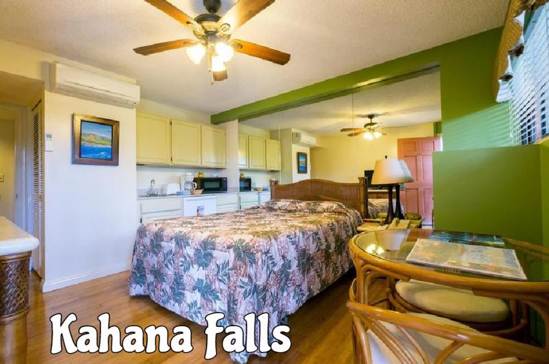 Kahana Falls Maui, Beautiful Resort rental in Lahaina has 1 bedrooms, 1 bathrooms, 4 sleeps, 7 minimum stay Resort for rent in Lahaina Hawaii with the amenities and near by attractions , Air Conditioning, Free WiFi, Game Room, Parking, Cable/Satellite TV, Ceiling Fans, DVD Player, Microwave, Washer/Dryer Near the beach, Laundry facilities, Outdoor pool, Sun loungers, Spa tub, Business center, Service animals only (pets not allowed), Bed sheets provided, Shower/tub combination, Hair dryer, Free toiletries, Terrace, Barbecue grill, Garden, Picnic area